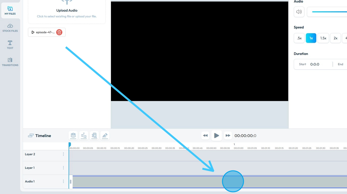 8. Drag and Drop the "Audio" file in the "Audio Layer" of the "Timeline".
