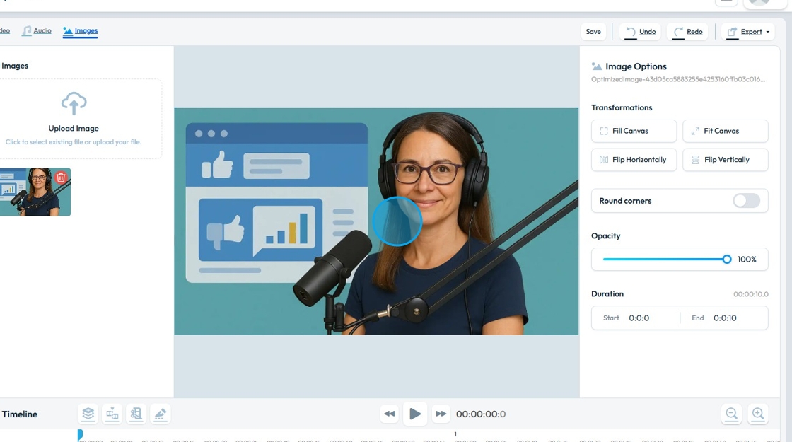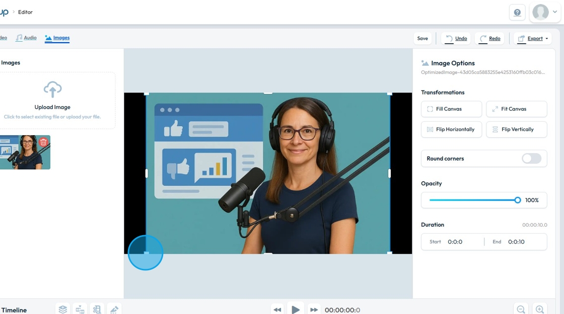 Learn how to add images to your videos using PodUp's Editor. This quick guide covers two ways to access the Editor and simple steps to upload and place images—helping you create more engaging, polished videos. 1. Navigate to ...