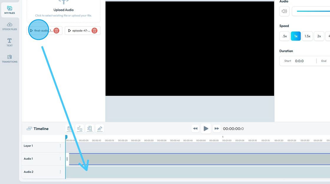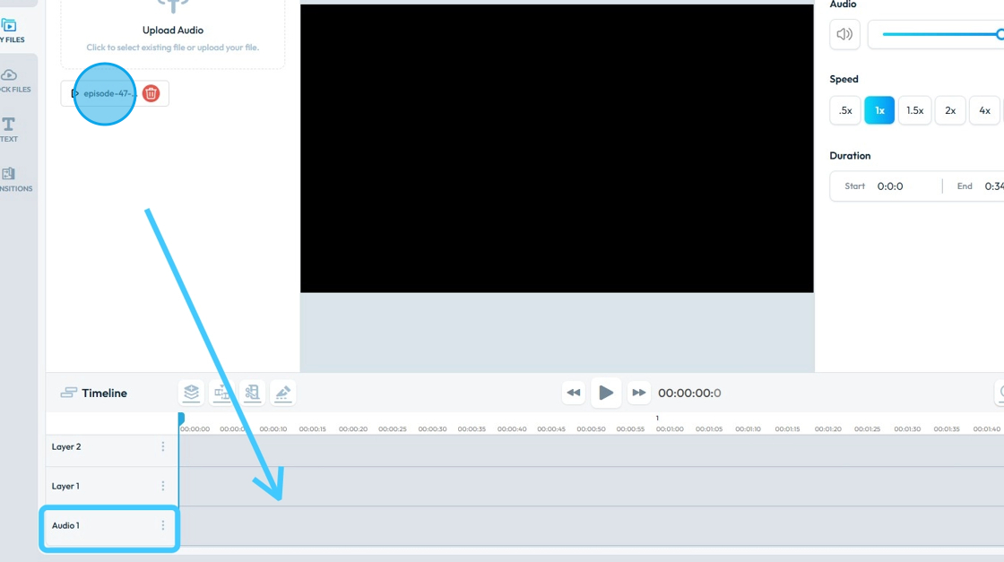 11. Drag & Drop the "Podcast Audio" in the "Audio Track" of "Timeline".