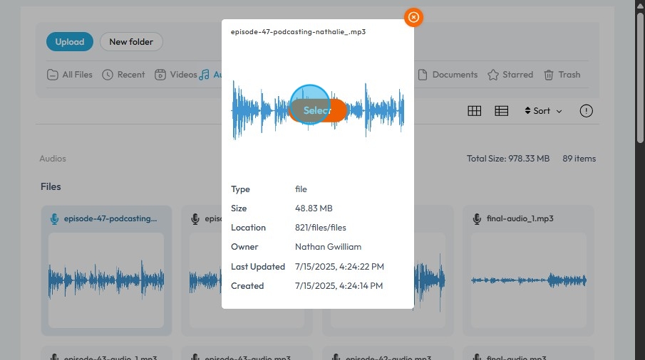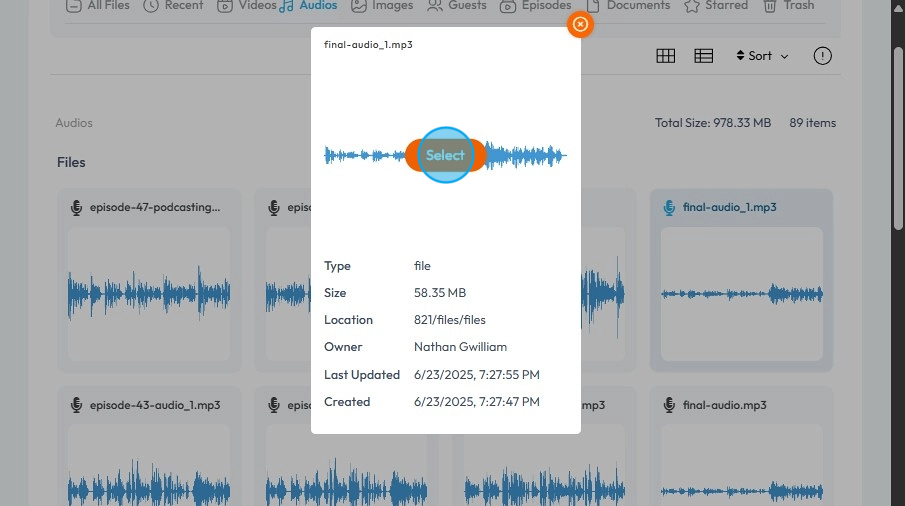 8. Click on the "Audio Episode" you want music to be added to.