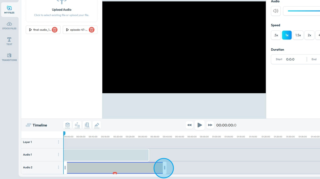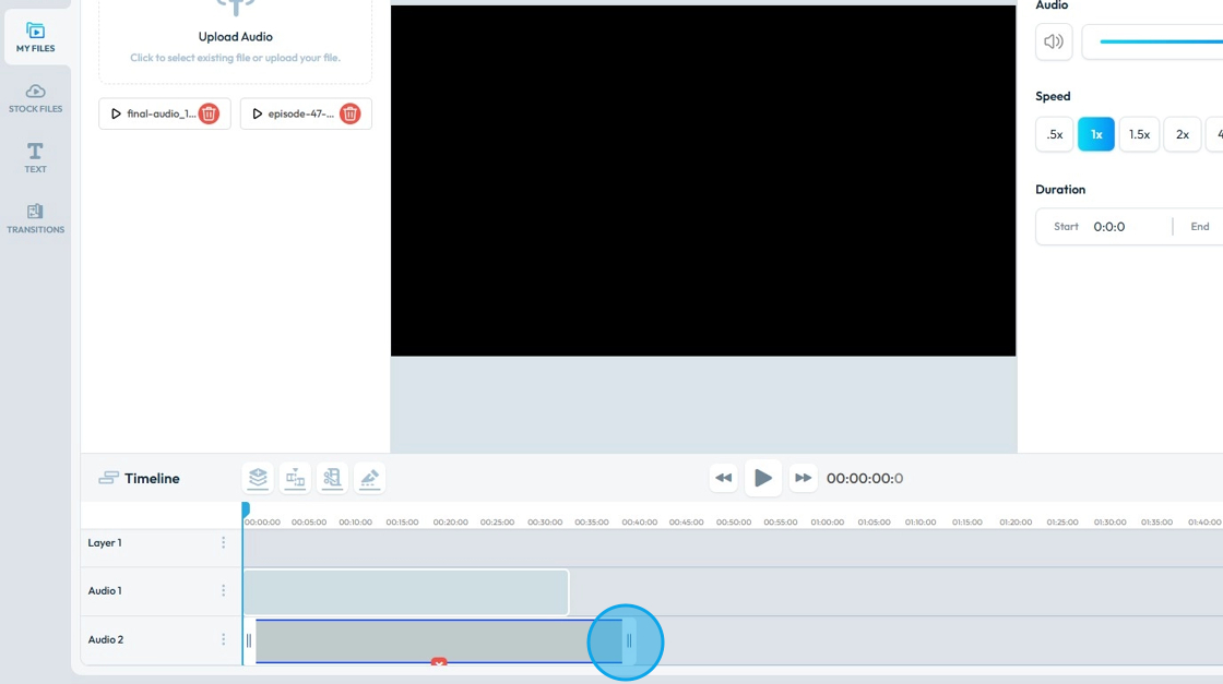 20. To change the length of the audio file, drag the end bar of the file to make it longer or shorter