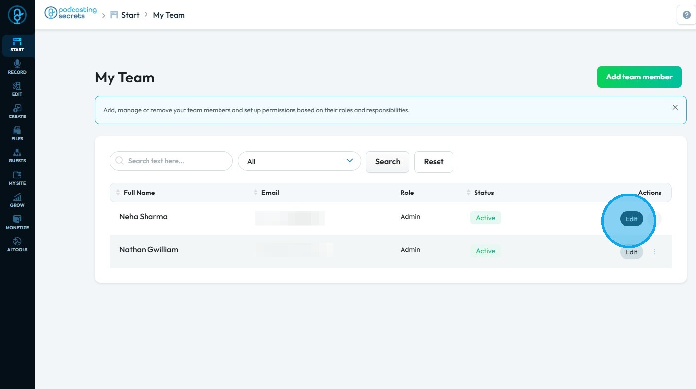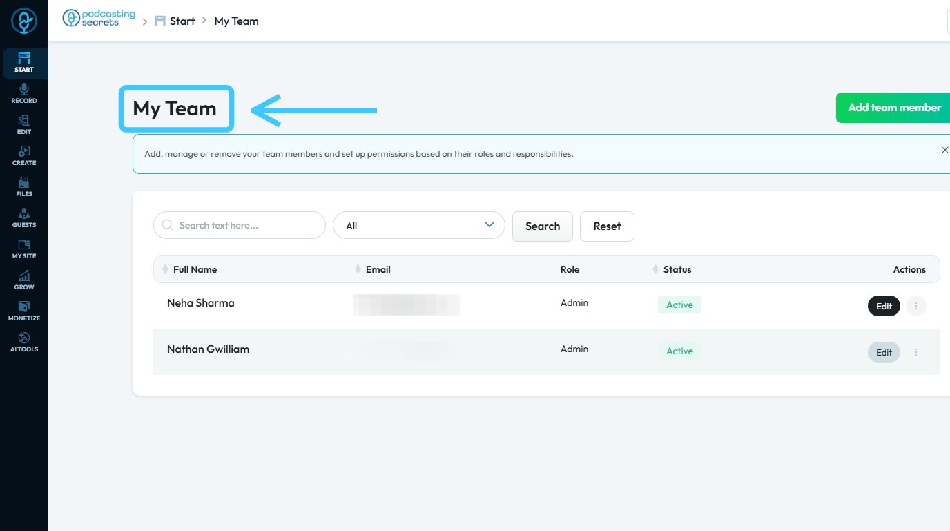 By following the steps outlined, users can easily identify roles and permissions, ensuring proper access management. 1. Navigate to https://app.podup.com/home 2. Click "Start" 3. Click "My Team" 4. The ‘My Team’ page will open, where you can check ...