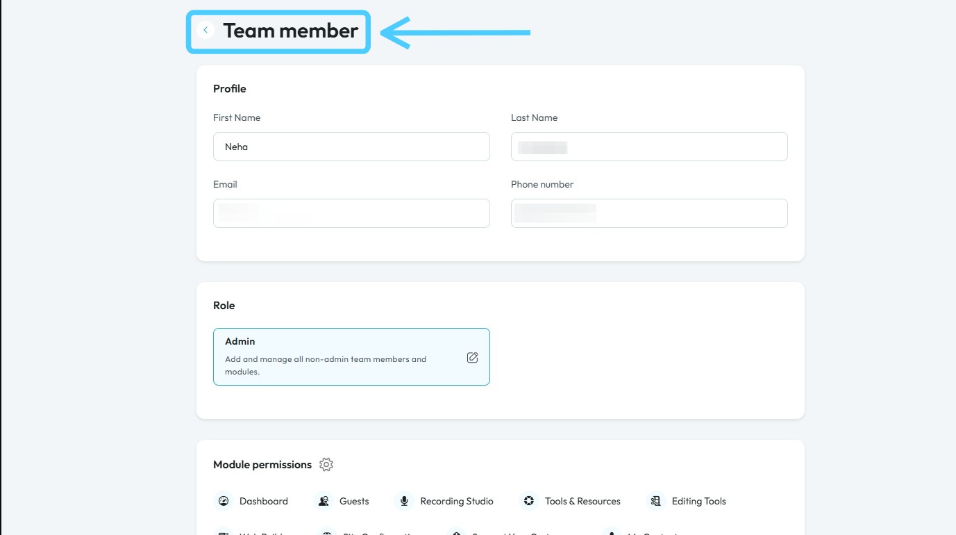 6. "Team member" page will open up