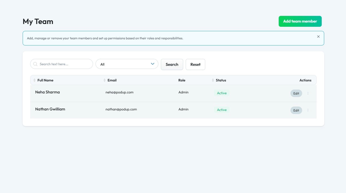 This guide offers a straightforward, step-by-step approach to adding team members on PodUp, ensuring you can efficiently expand your team. It details the roles available and their specific permissions, allowing you to make informed decisions about ...
