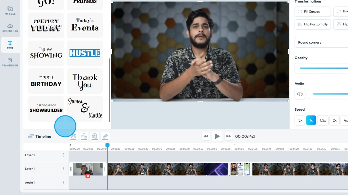 10. To add text you can either click on an "Text Option" and it will be added in the top most "Layer" or you can specifically drag and drop to a desired "Layer".