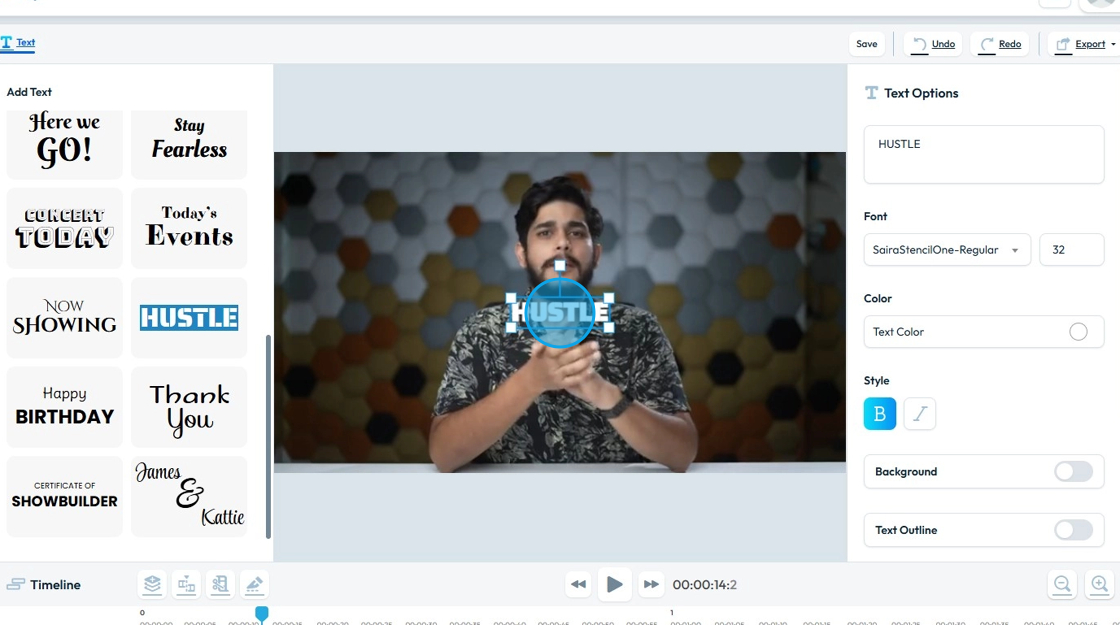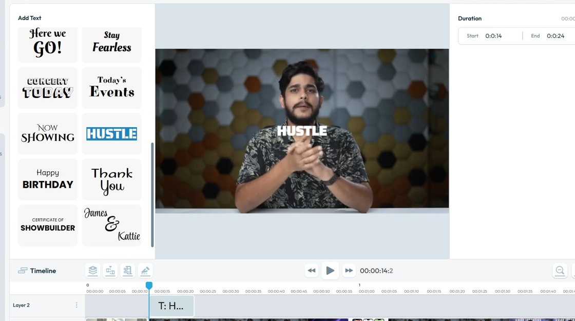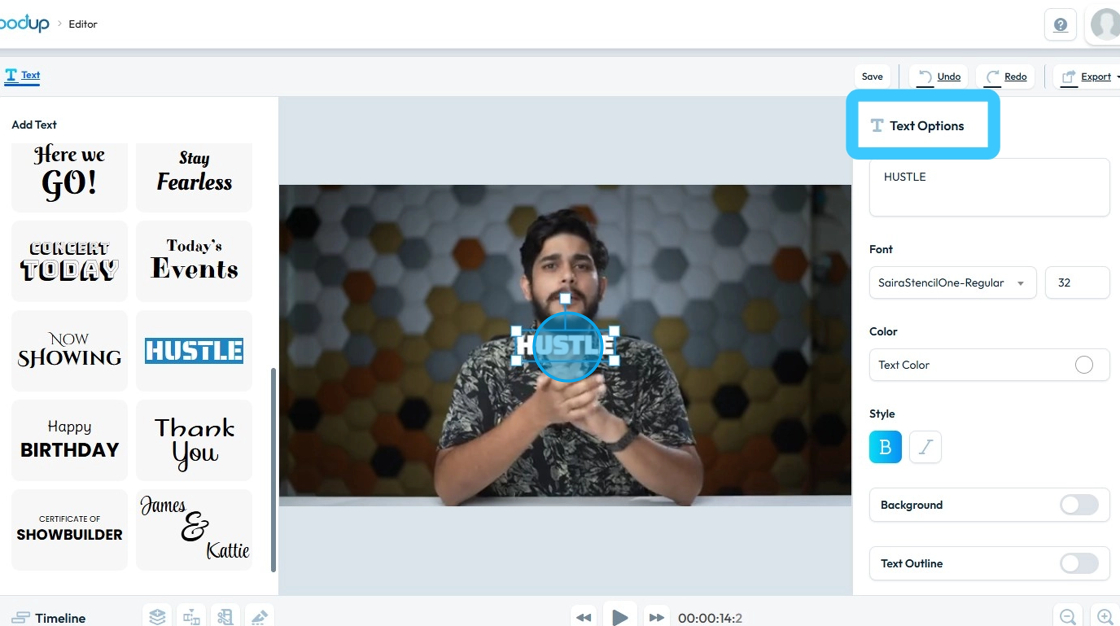 8. "Add Text" section will load up with types of text variations you can add to your video.