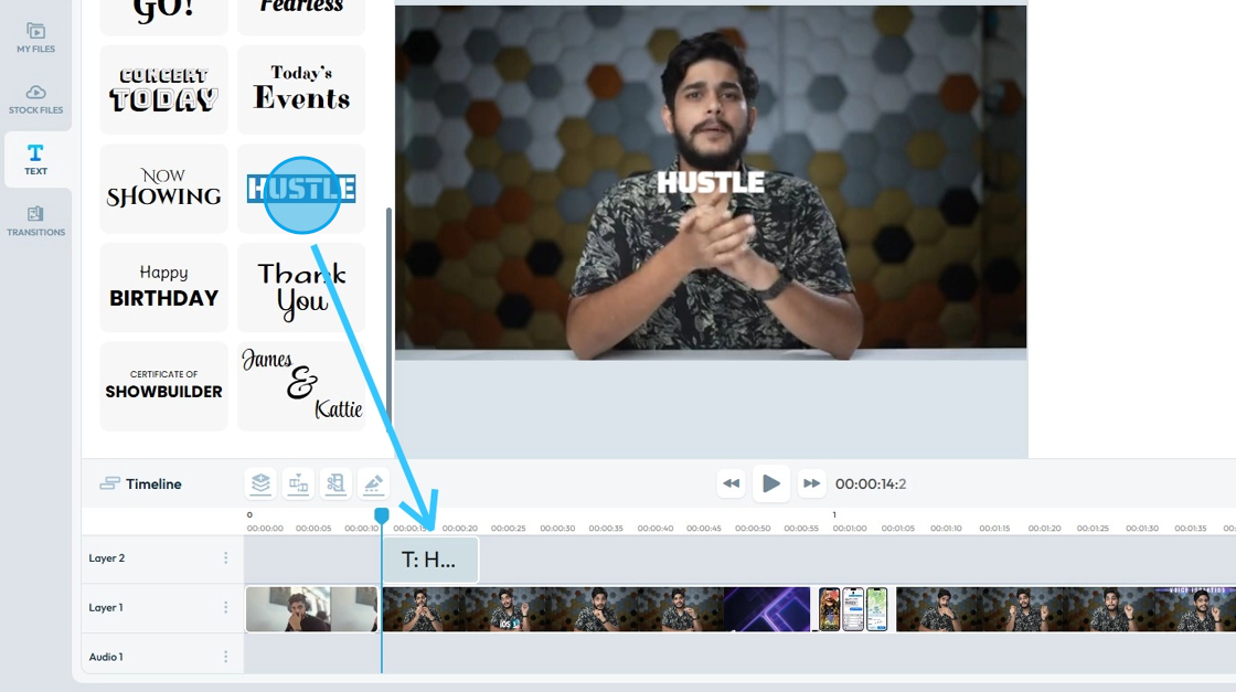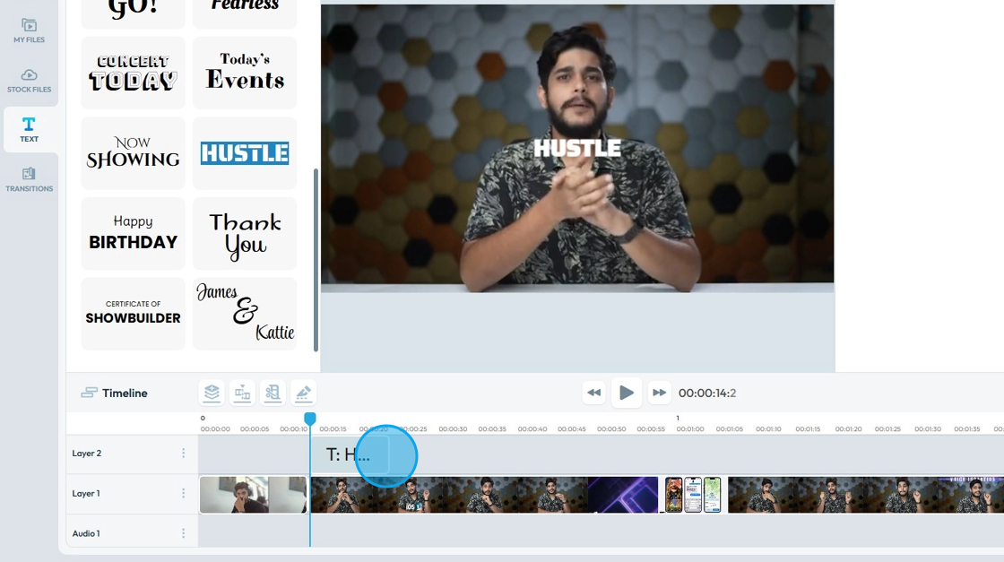 12. Adjust how long you want the text to stay on screen by dragging it out to the desired length