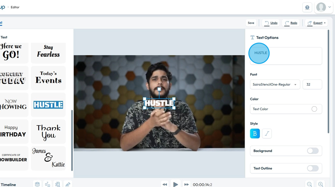 13. To "edit" the text, click on it and the "Text Options" section will open up.