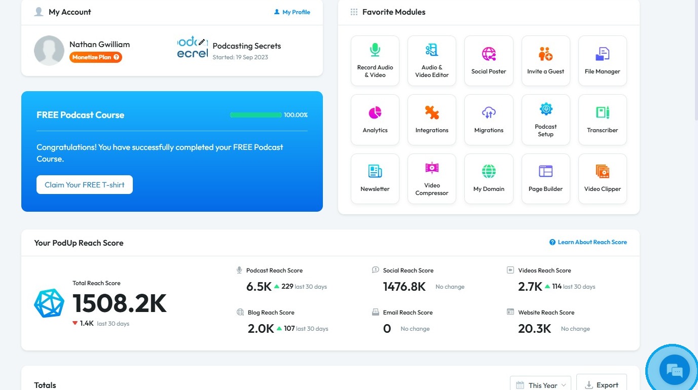 2. In the bottom-right corner of the “Dashboard,” click the chat bubble to access support