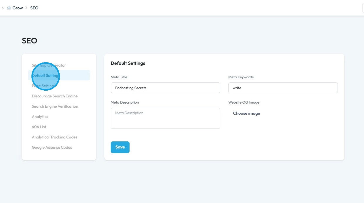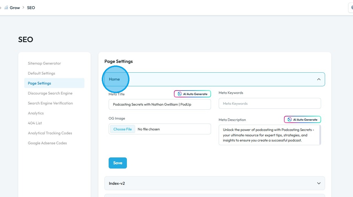 8. Select "Home" to include Meta Title, Meta Keywords, and Meta Description