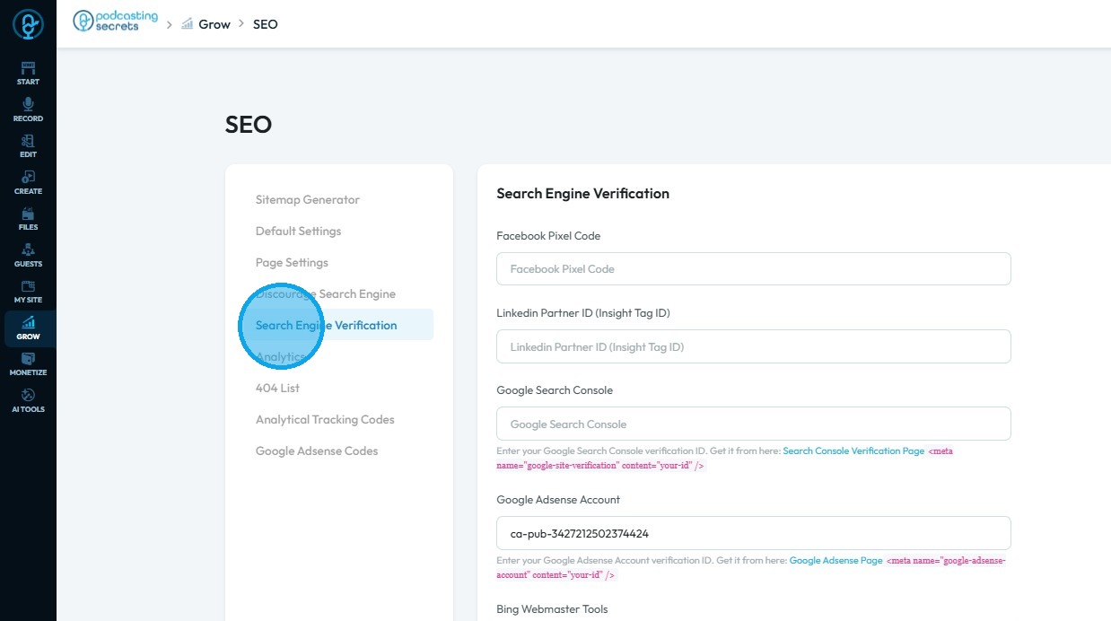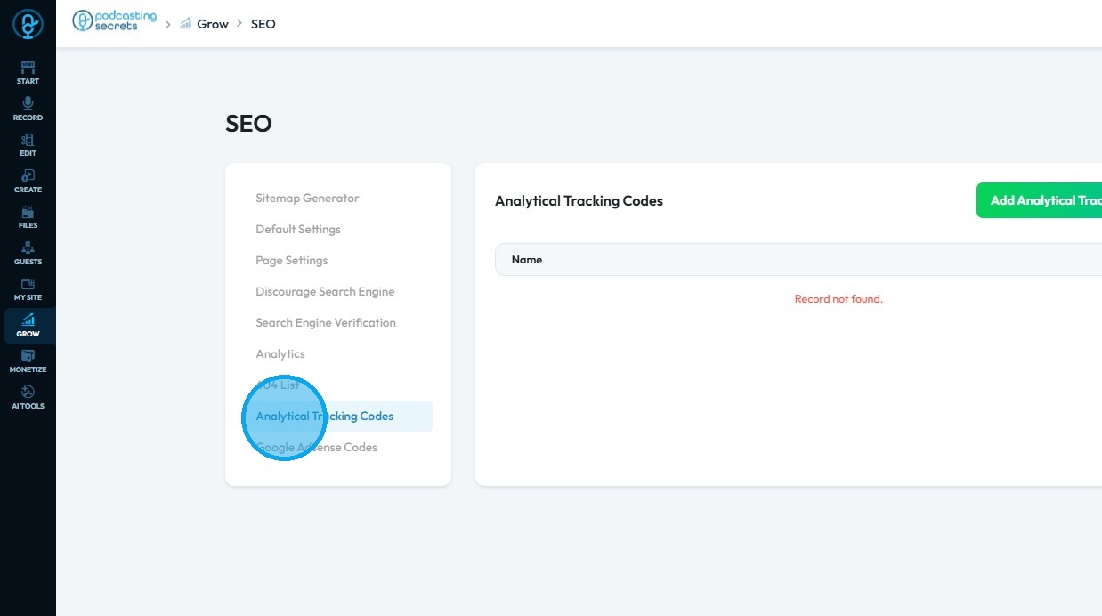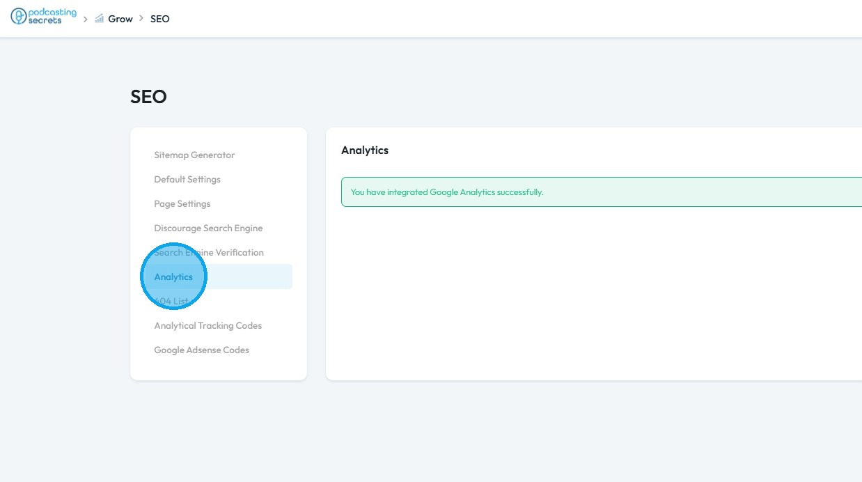 10. Click "Analytics" and integrate the Google Analytics associated with the account