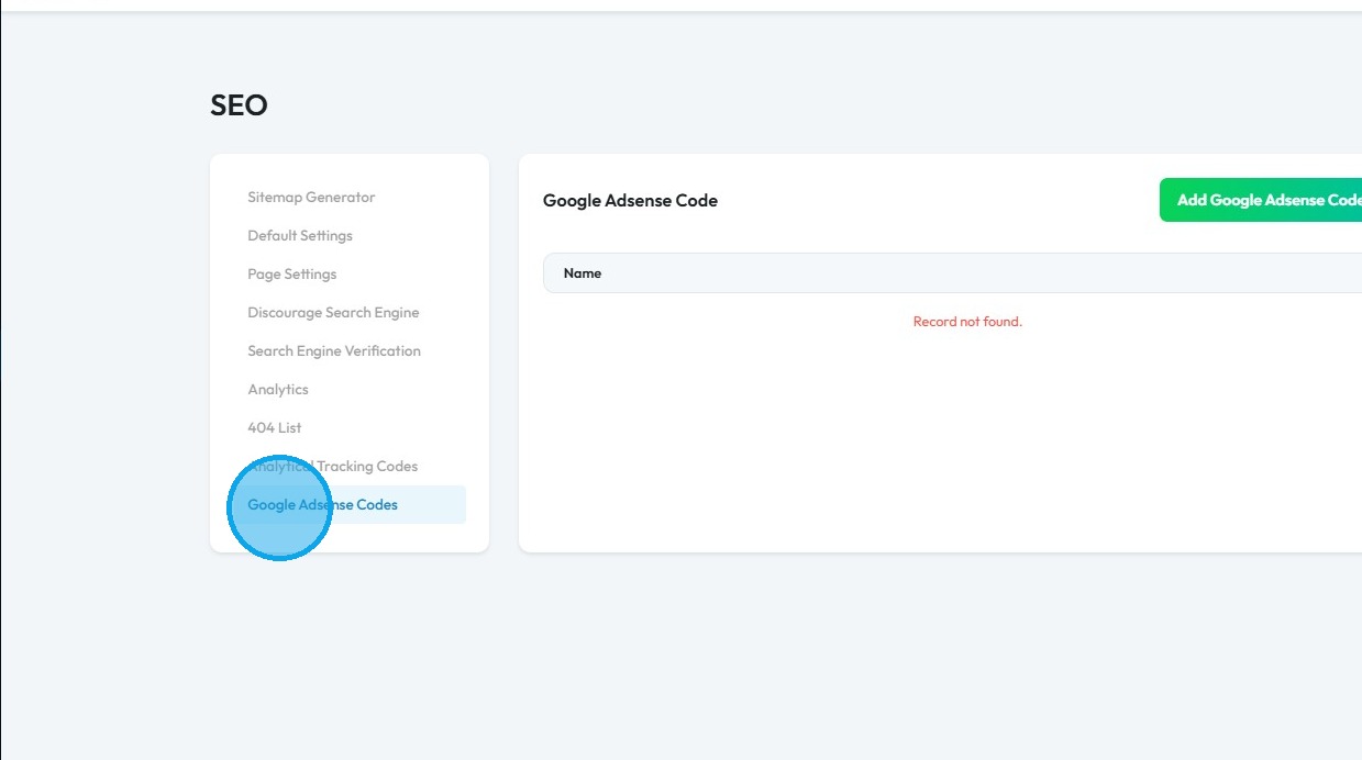 12. Click "Google Adsense Code" and add the Google Adsense code name record