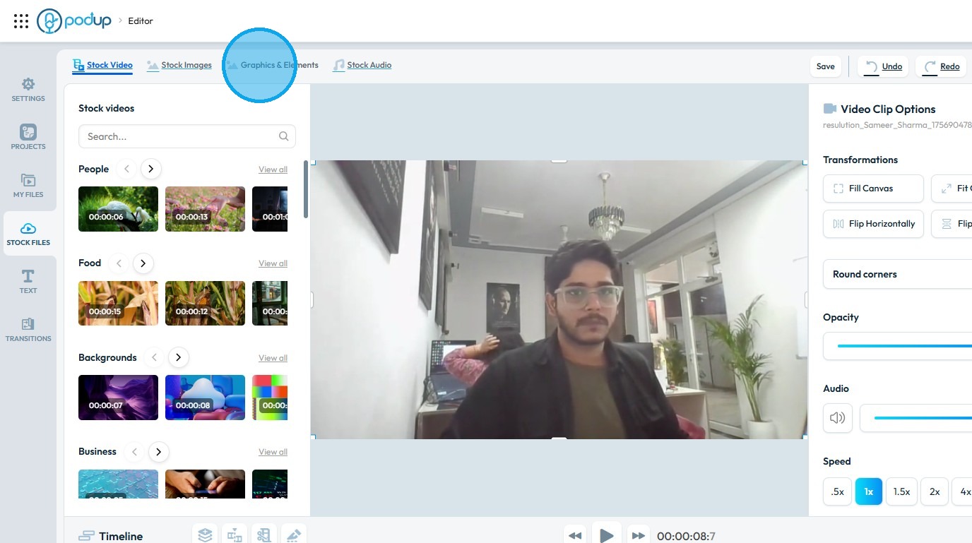 Use this guide to add and save graphics in your videos with PodUp’s editor.