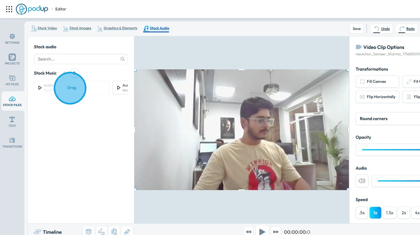 This guide shows you how to manage your video content without hassle. 1. Navigate to https://editor.podup.com/ and load a video into the Timeline 2. Drag and drop a video onto the Timeline 3. Once the video is loaded onto the Timeline, you can make ...