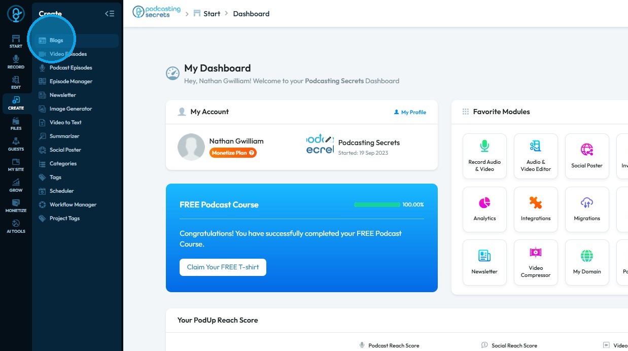 This guide makes it easy to upload and share your audio podcast on your website so your audience can enjoy it. 1. Navigate to https://app.podup.com/home 2. Click "Create" to proceed 3. Select "Podcasts" 4. Click "Create Podcast" 5. This will open ...