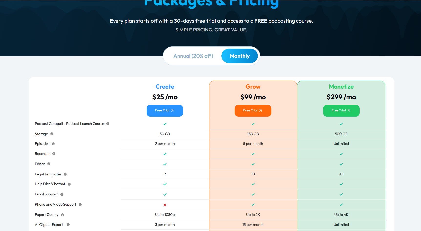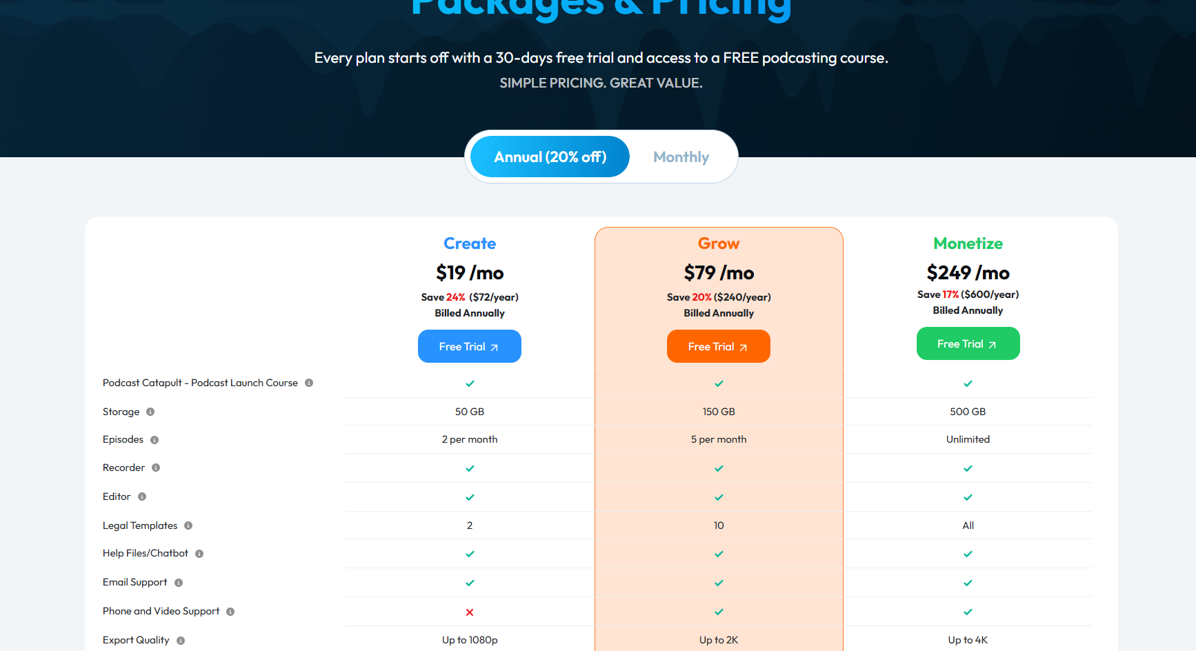This guide provides a comprehensive overview of PodUp's pricing options, making it easy for potential users to compare annual and monthly subscription plans. It highlights the cost differences between various tiers, from a free starter plan to more advanced options, ensuring users can choose the best fit for their needs and budget. Additionally, it emphasizes the cost-effectiveness of annual subscriptions, helping users make informed financial decisions.