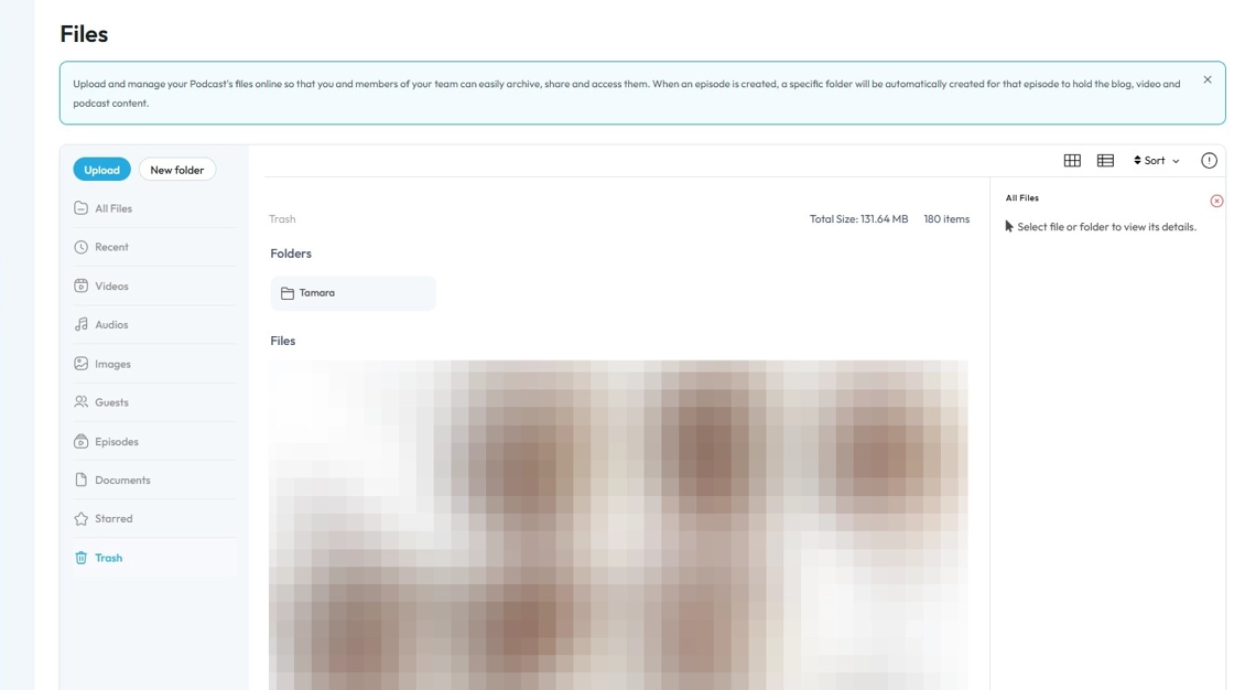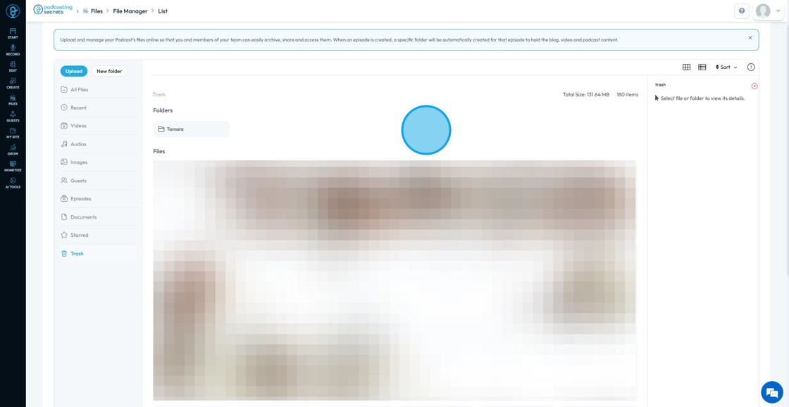 This guide shows how to access the Trash in PodUp to quickly recover lost files and manage your content.