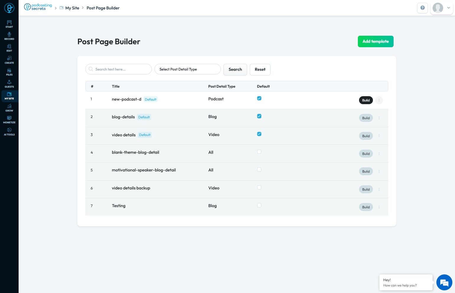 6. The "Post Page Builder" will open