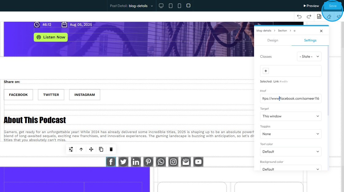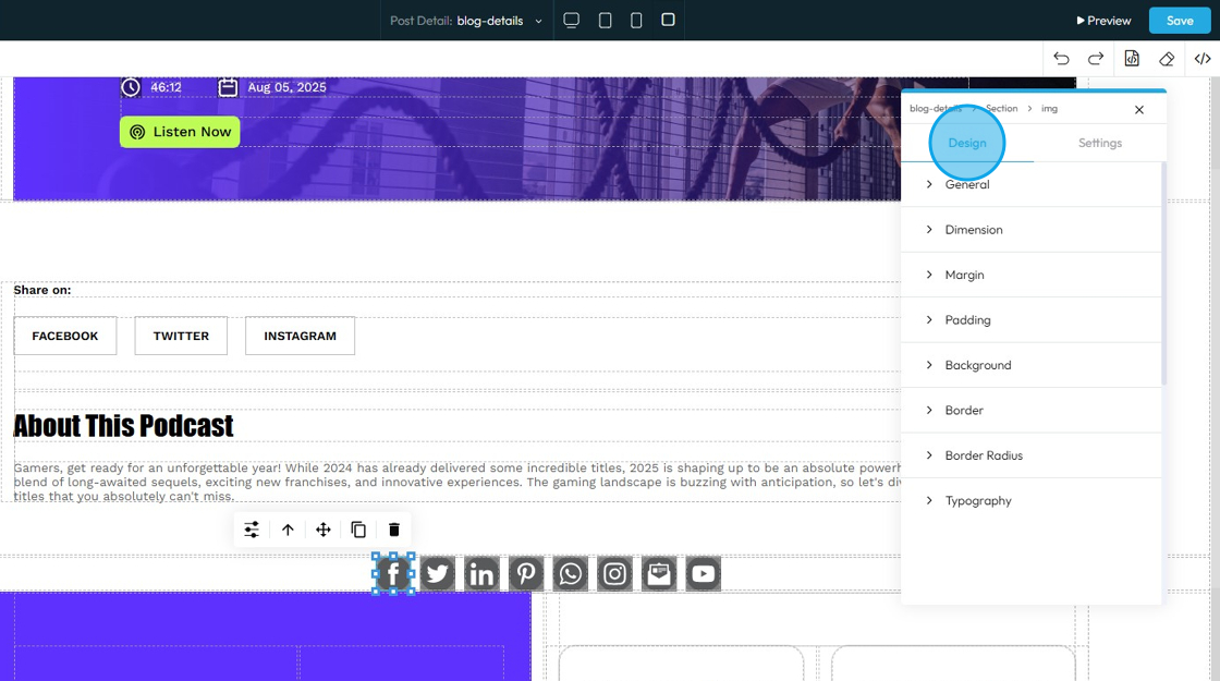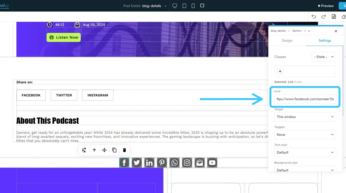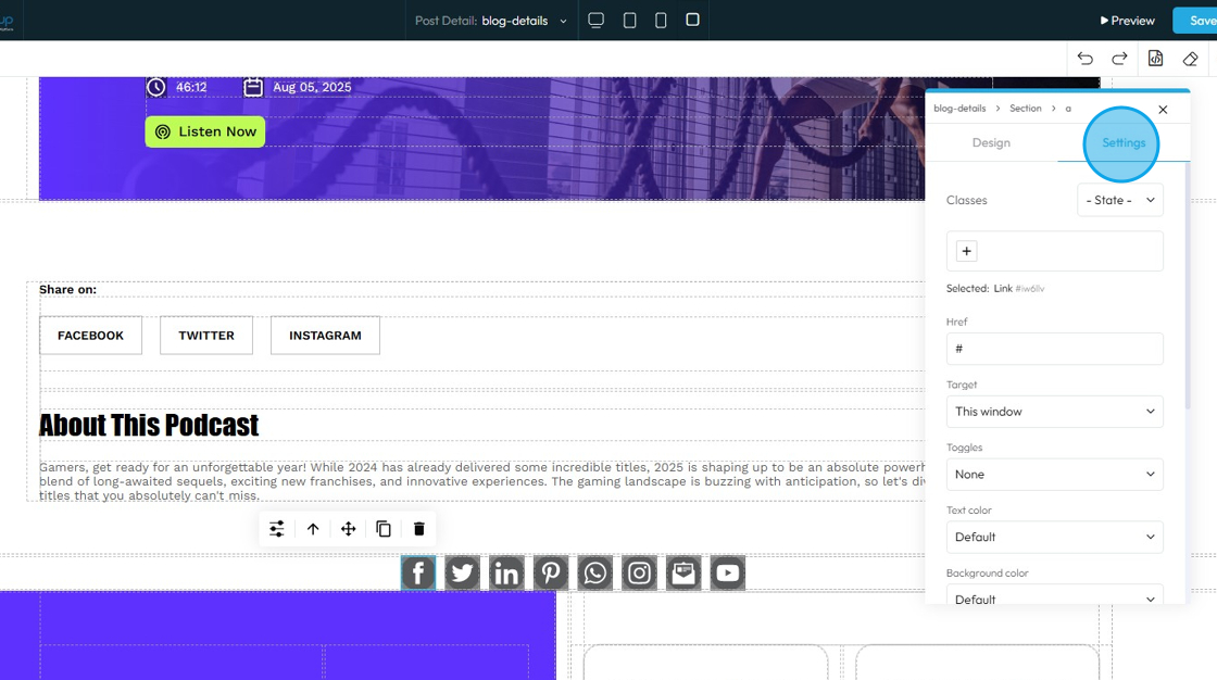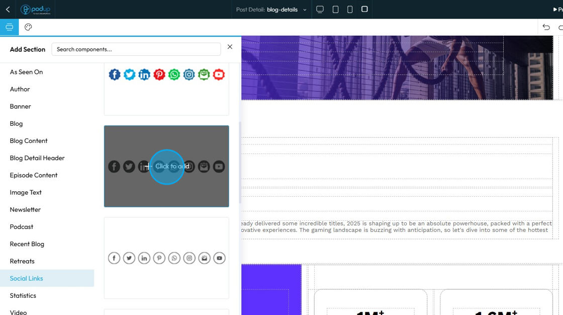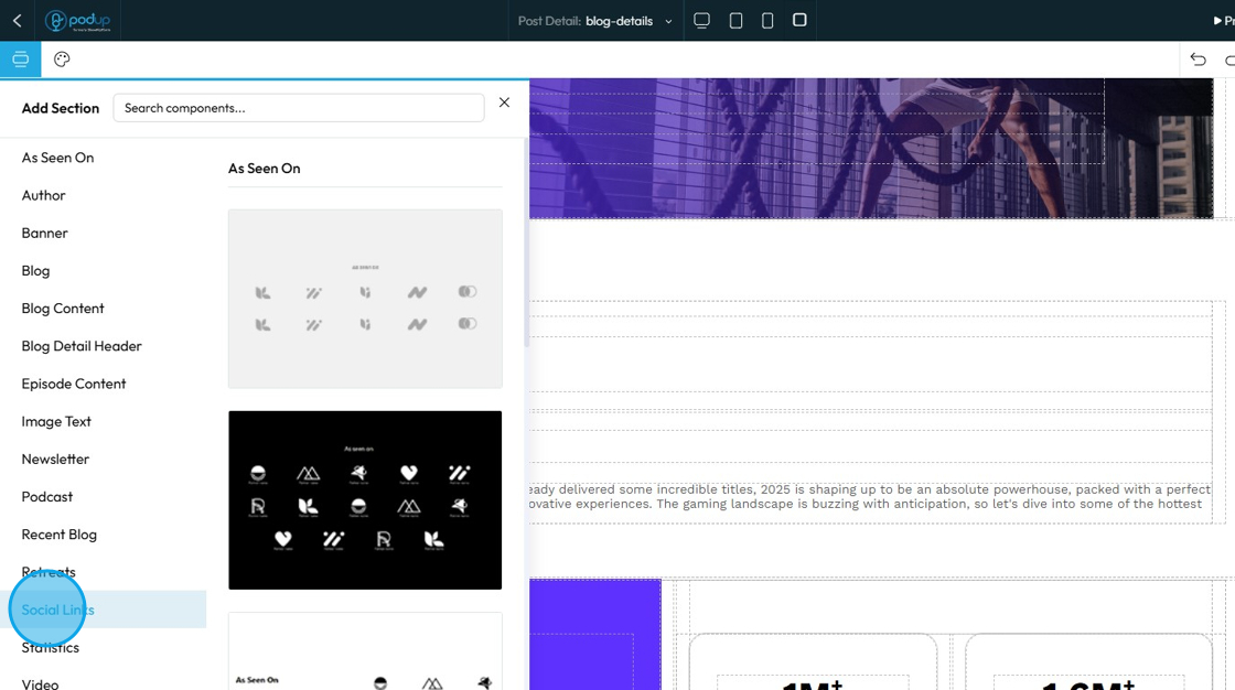 6. PodUp Post Page Builder will load up. Click on the "Component" section.