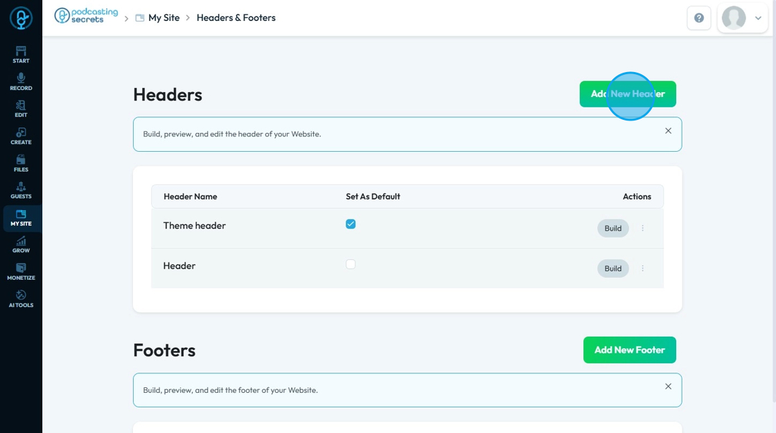 This guide shows you how to easily create a custom header using templates and styles, with global and default settings to keep your site consistent. Quick edits make it simple to get the look you want. 1. Click "My Site" 2. Click "Header & Footer" 3. ...