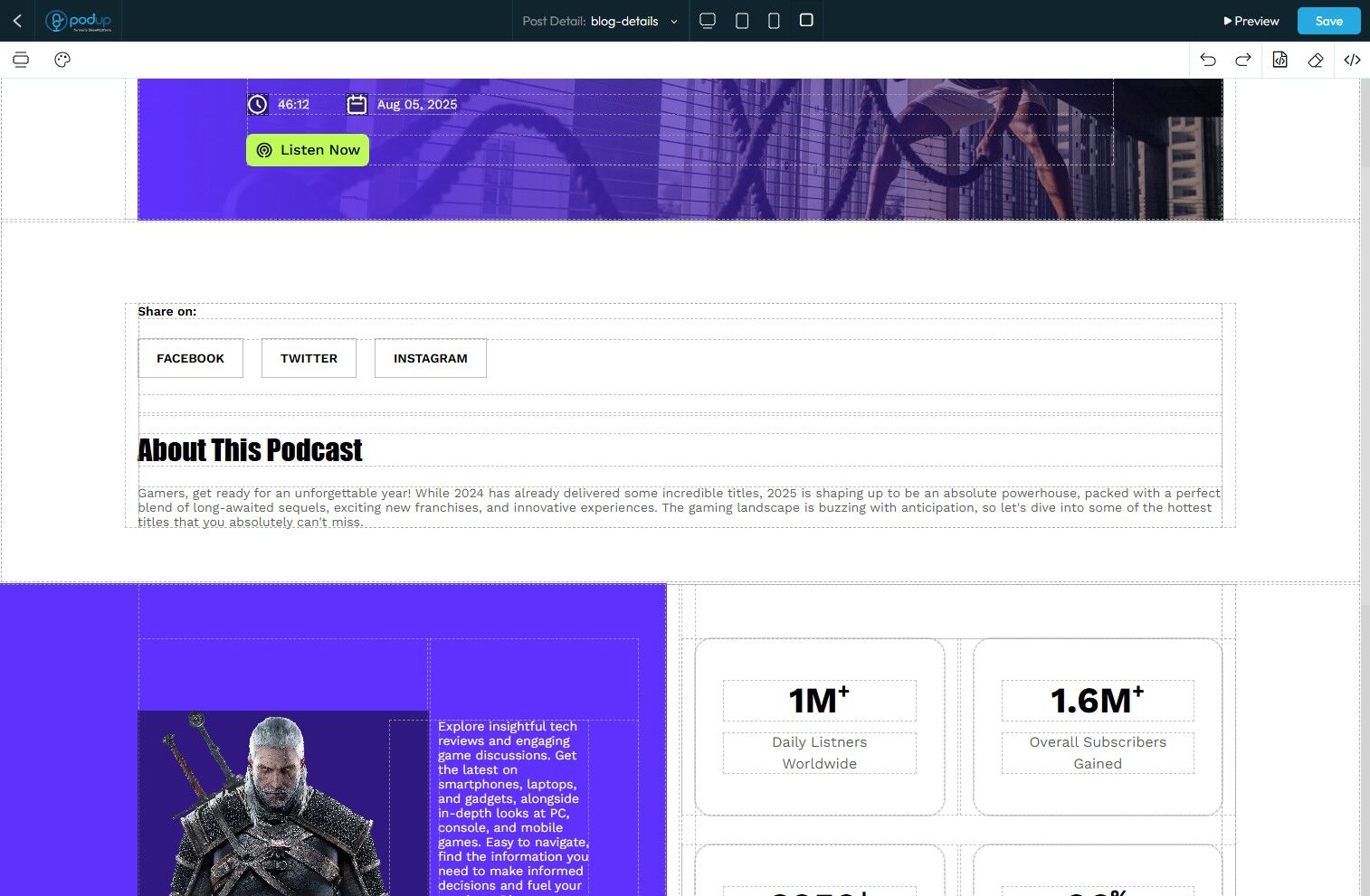 24. Return to the "PodUp Post Page" builder.