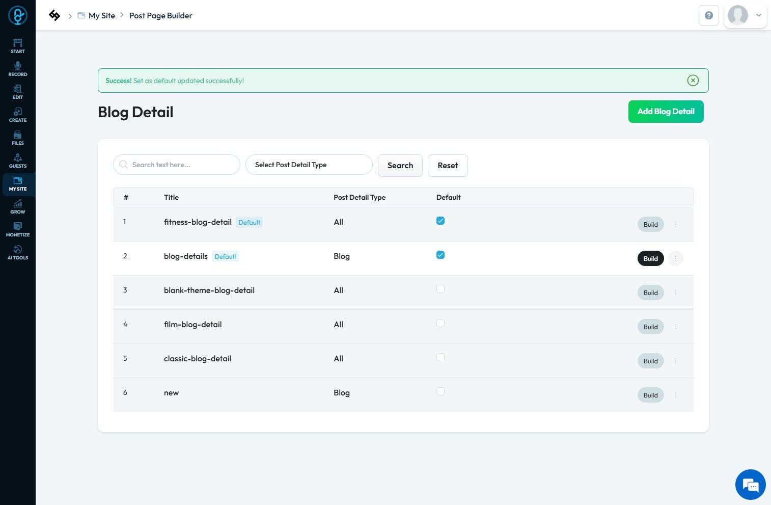 5. Click the "3 Dots" icon next to the "Blog Details" page set as "Default.
