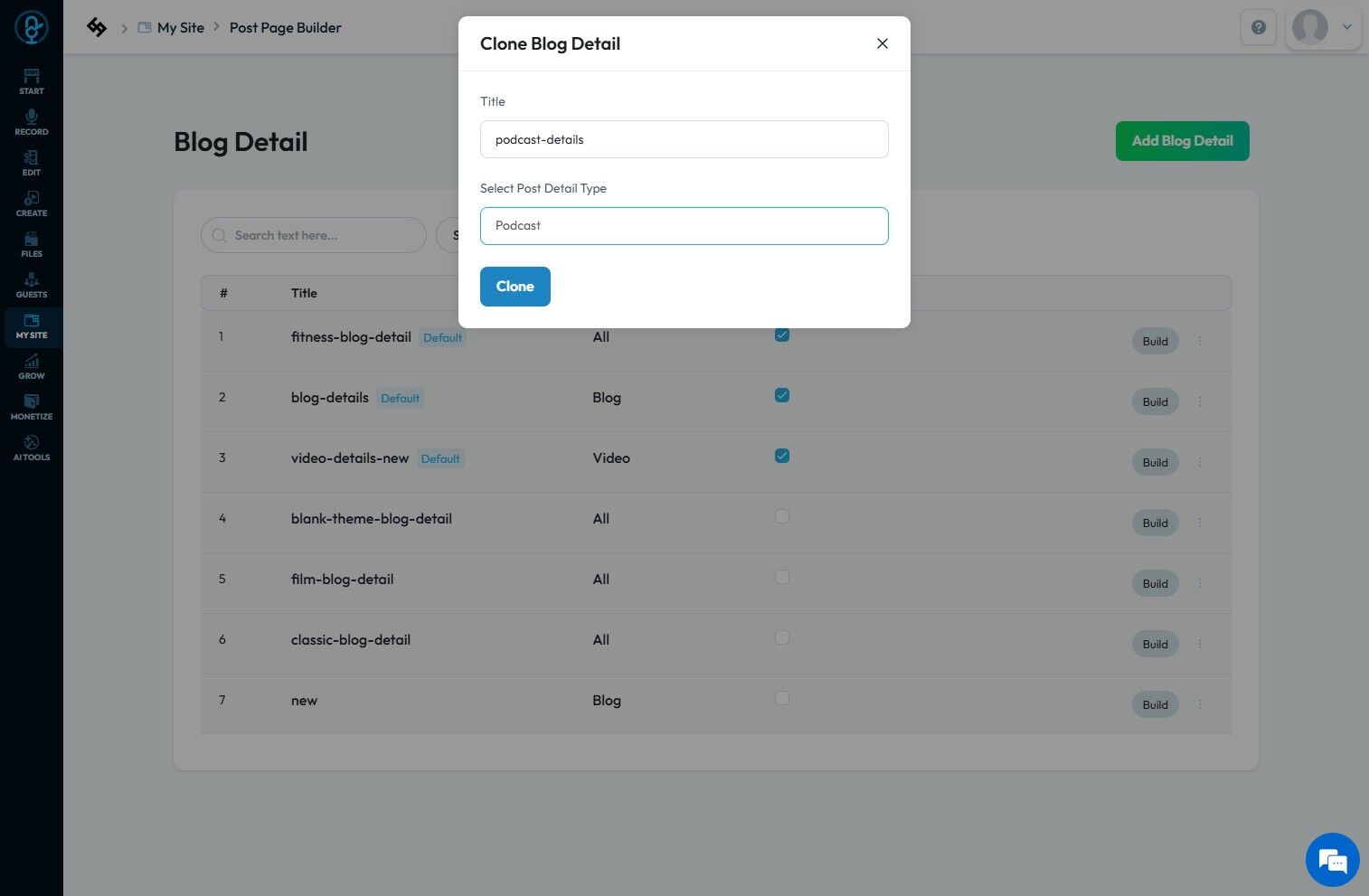 10. The "Clone Post Detail Type" has been created