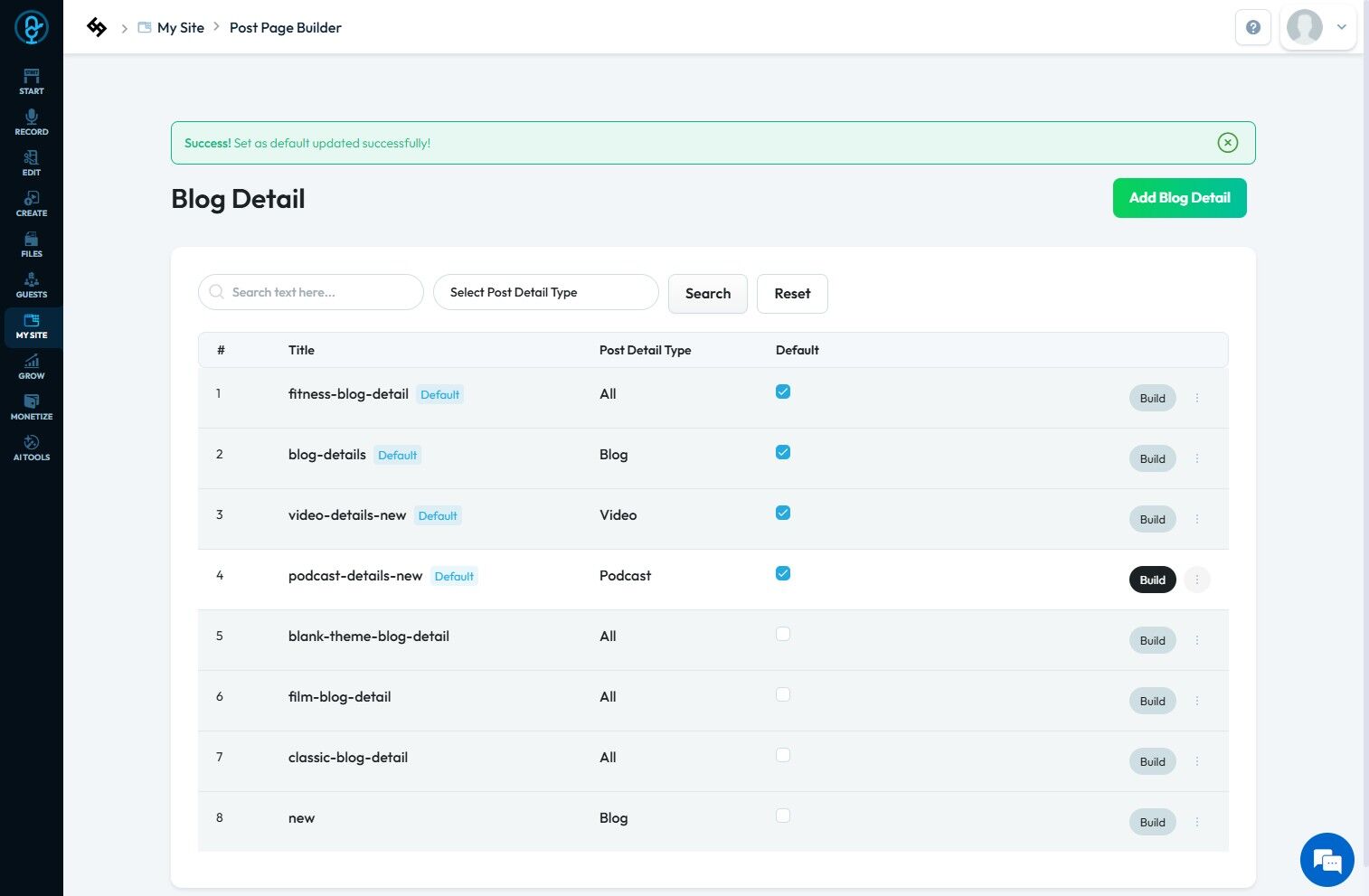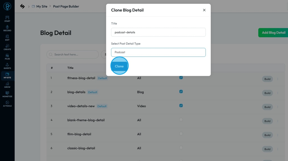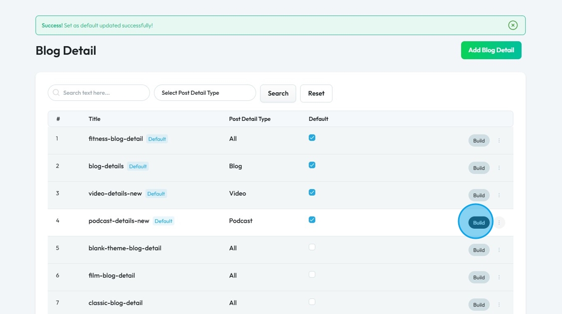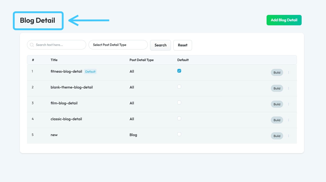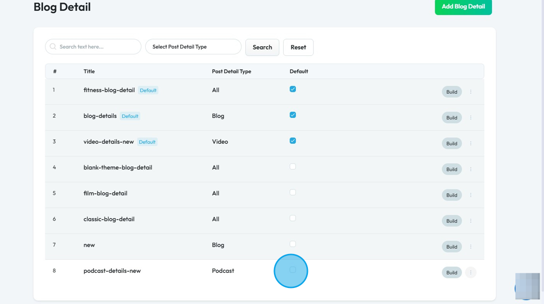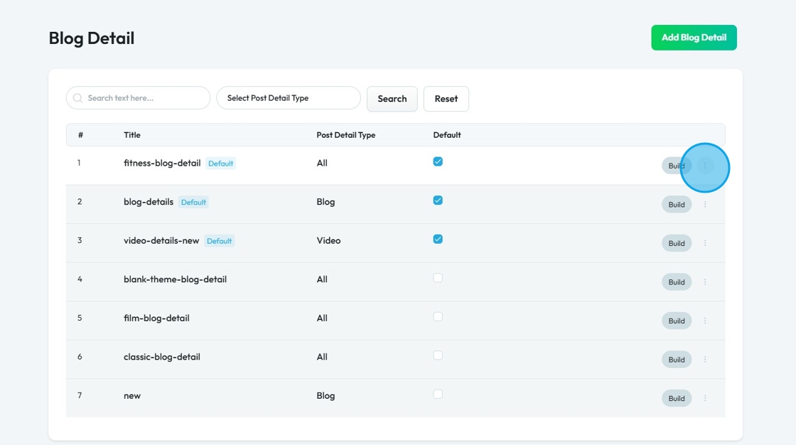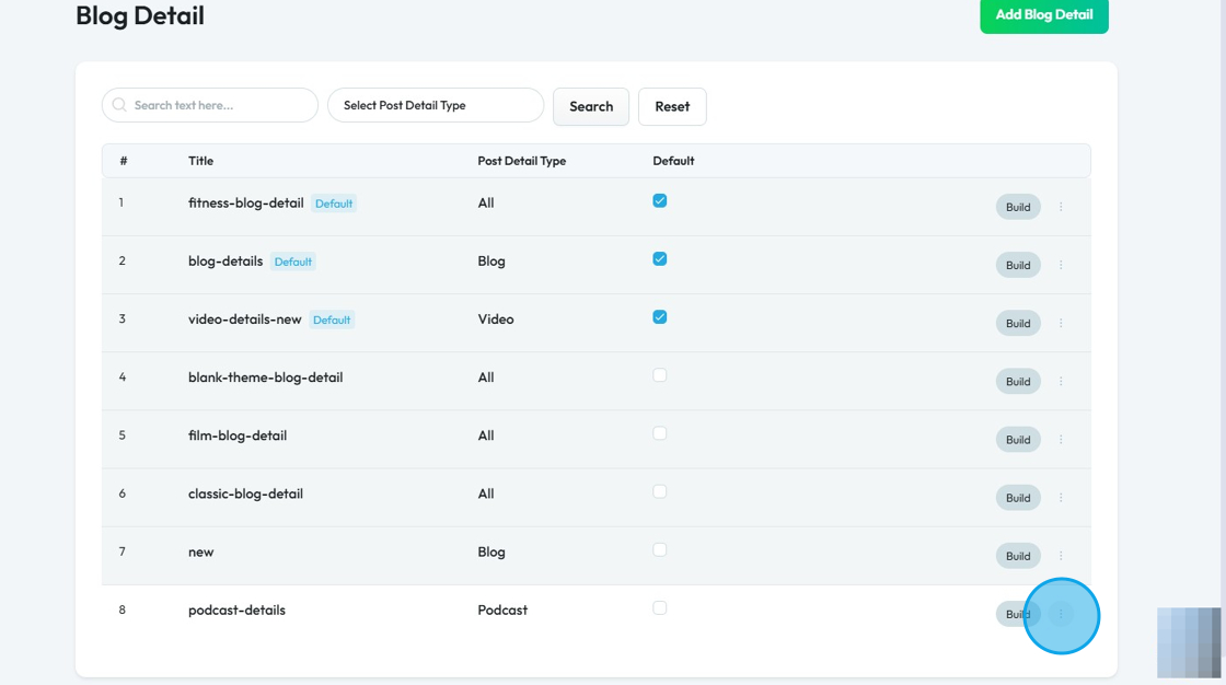5. Click the "3 Dots" icon next to the "Blog Details" page set as "Default.