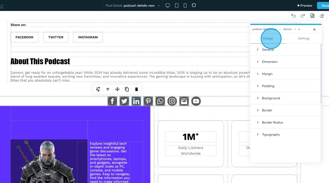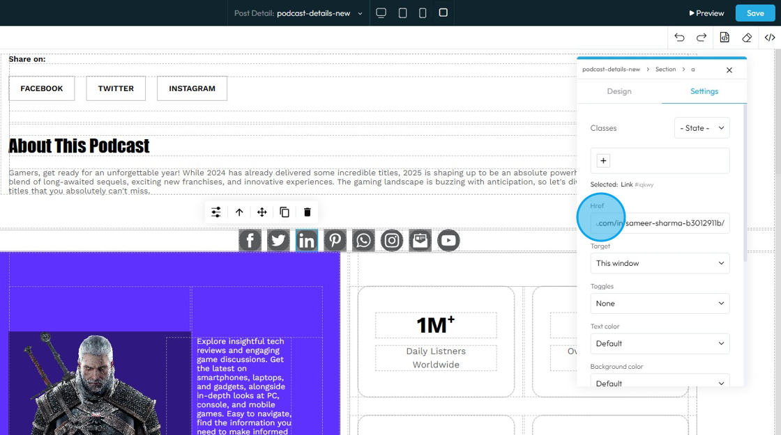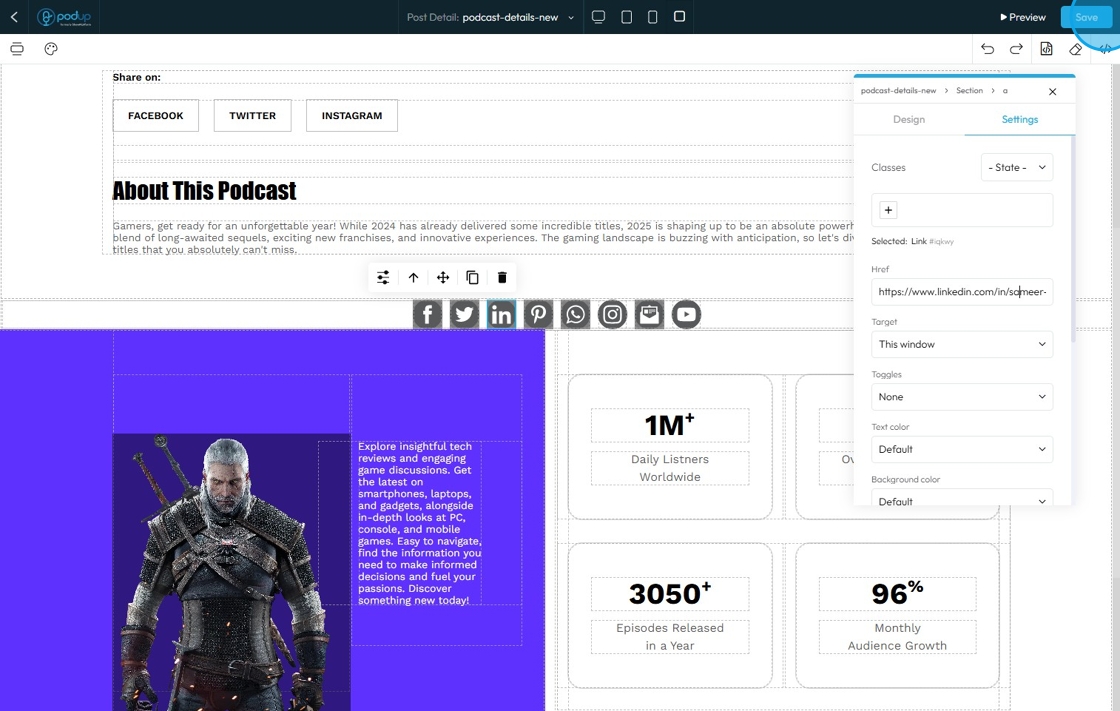 28. Navigate to your Podcast Page and click the "LinkedIn" icon.