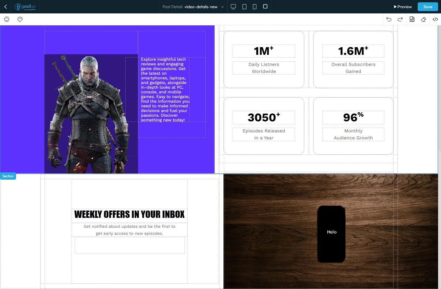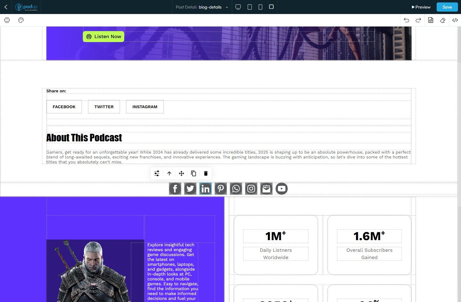 17. The PodUp Post Page Builder will load. Click the "Component" section