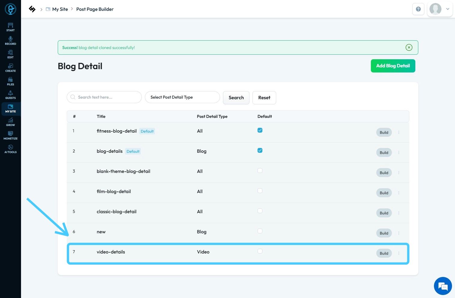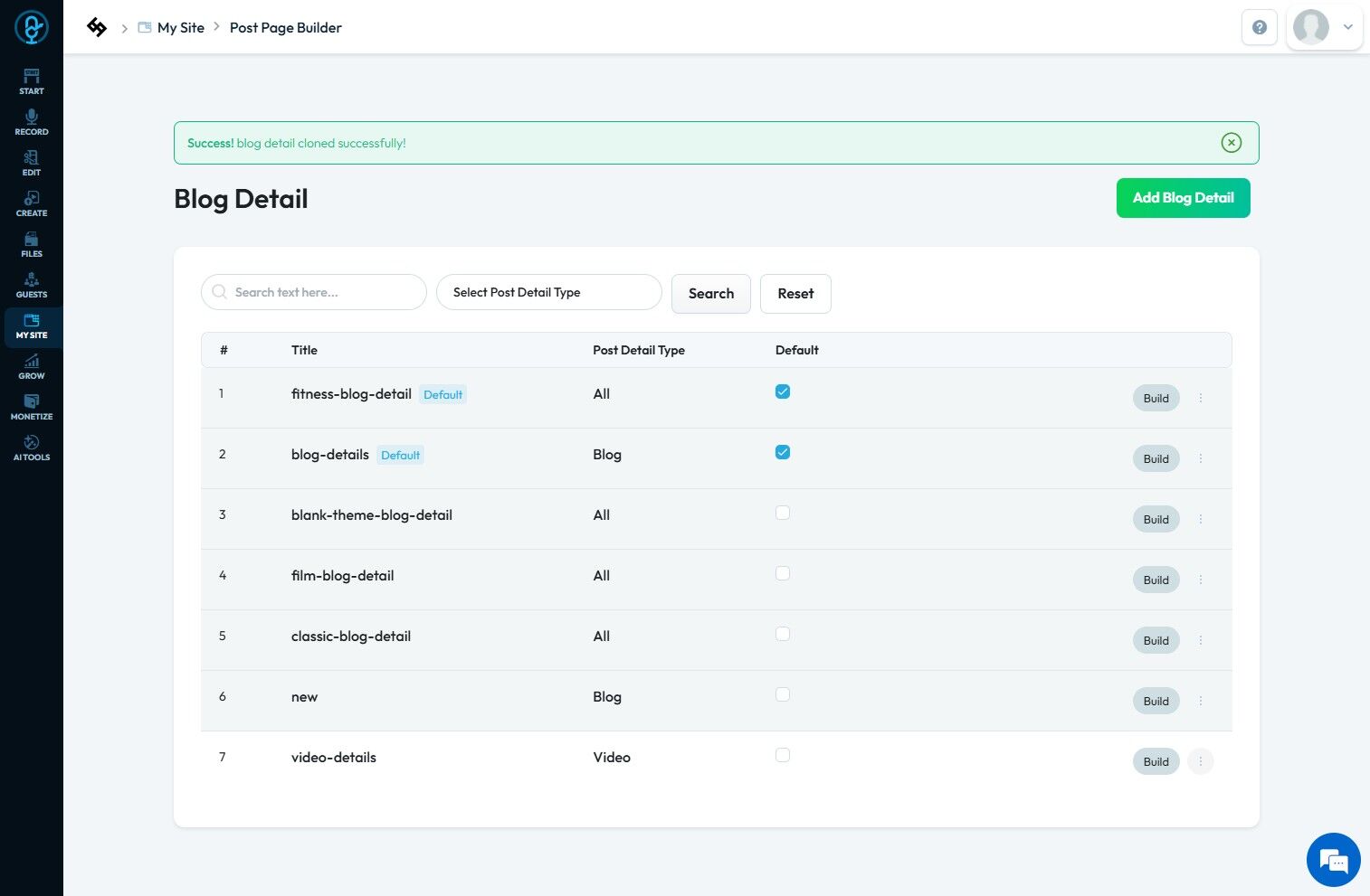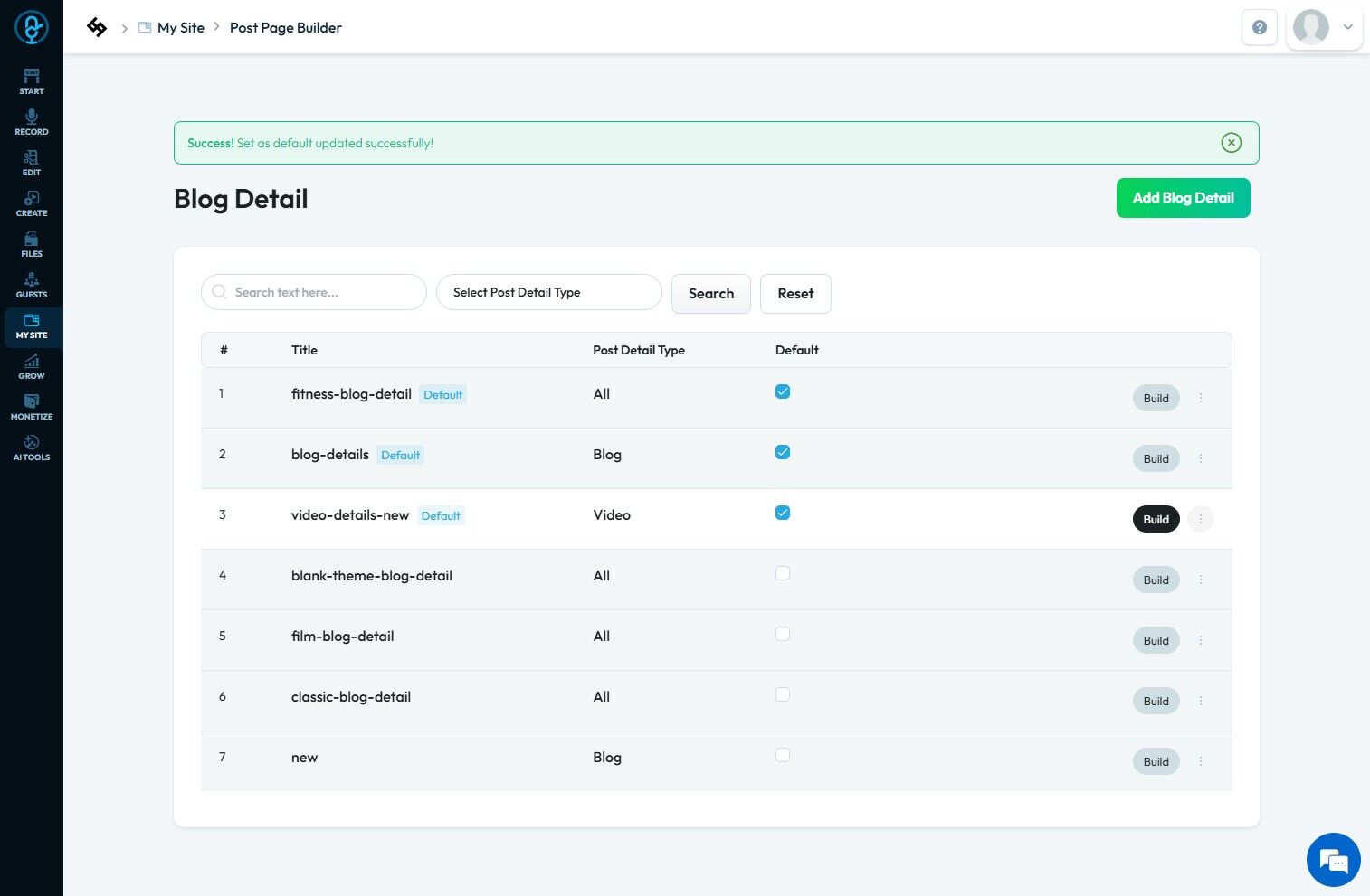5. Click the "3 Dots" icon next to the "Blog Details" page set as "Default.
