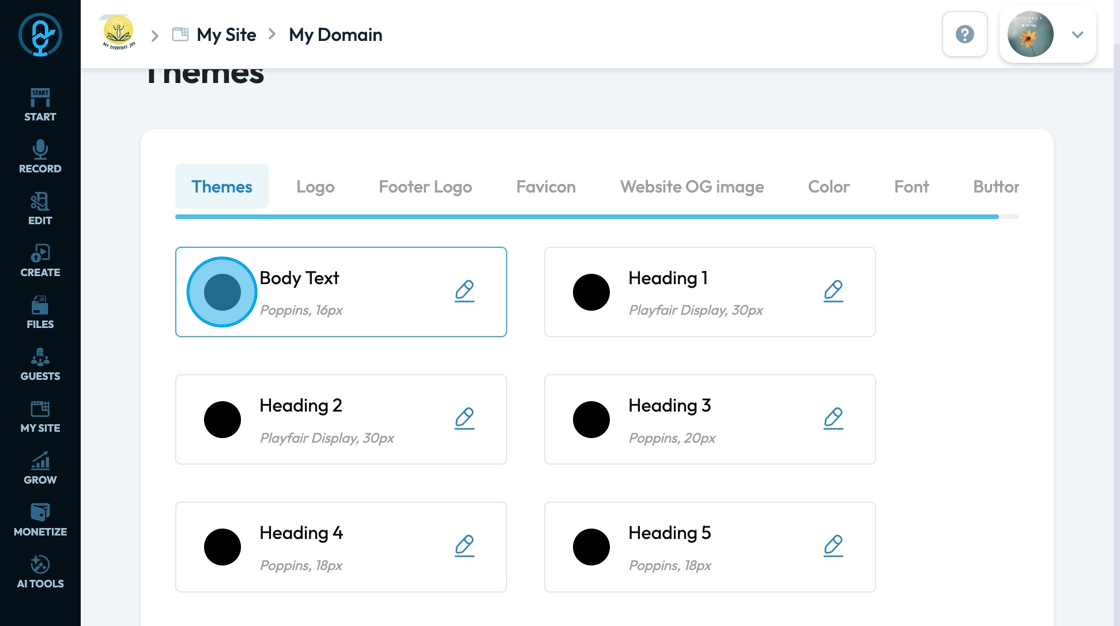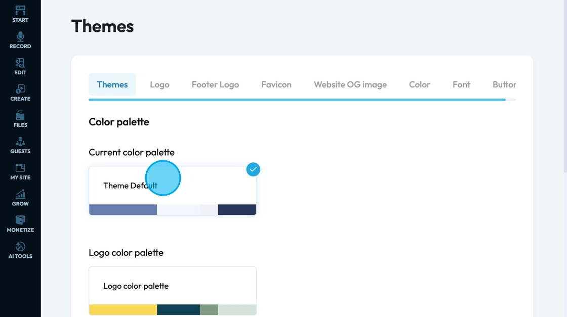 By following this guide, you can easily change your PodUp site theme to match your brand and enhance user experience. 1. Navigate to https://app.podup.com/home 2. Click "My Site" 3. Select "Site Themes" 4. The ‘Site Themes’ page will load 5. The ...