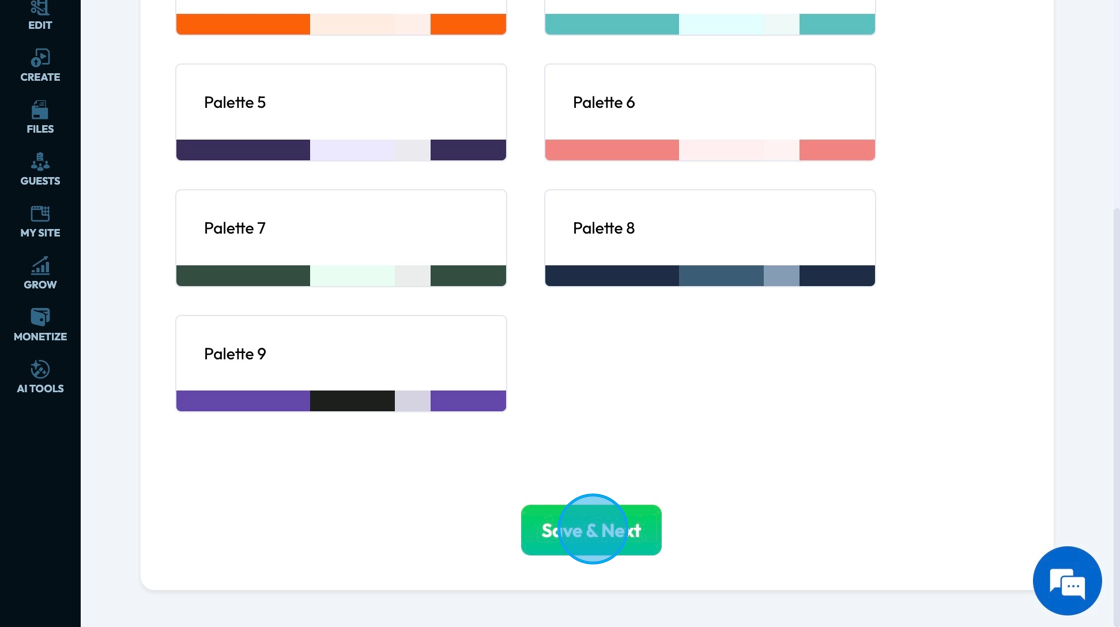4. Site themes will appear with 16 website templates. All of these templates are editable but it gives a start to what the website could look like