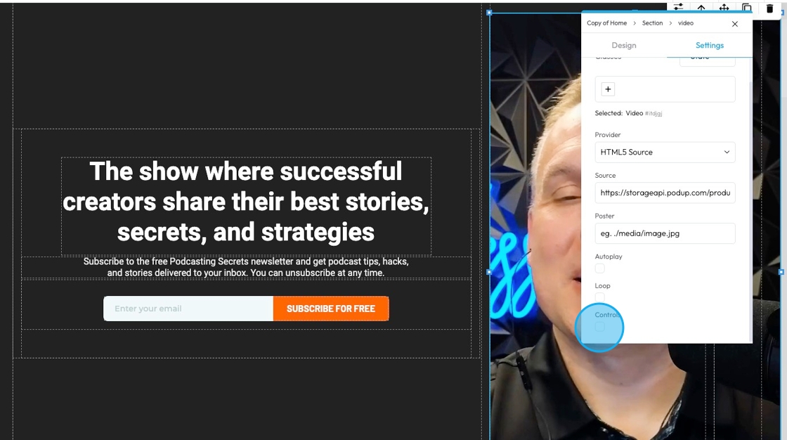 21. Click " Controls" to add the playback buttons that viewers can use to interact with the video like Play/Pause, Volume control, or a progress bar