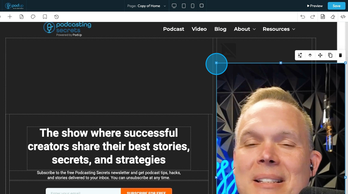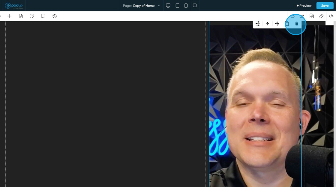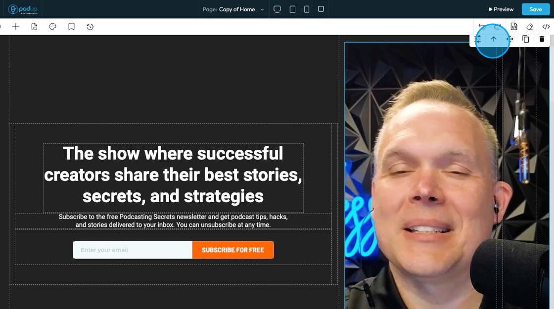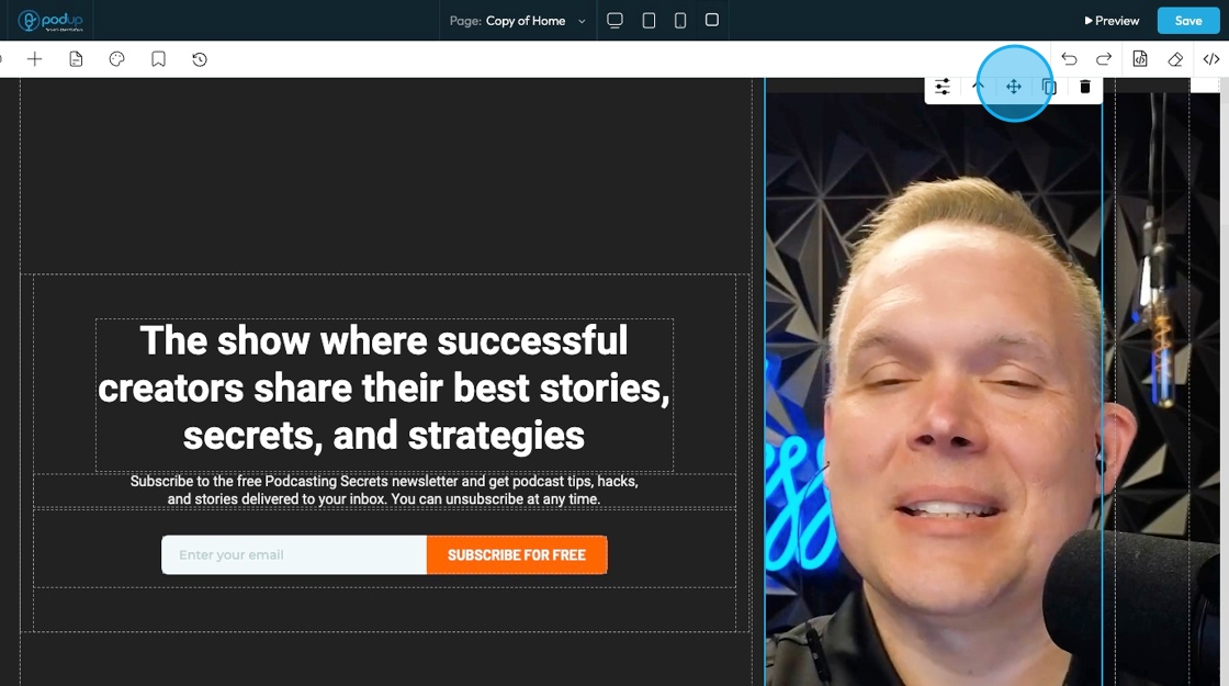 24. Move: Reposition the section to where you want. Click and hold this icon while you drag it to the desired location. A green line will indicate where it is being placed