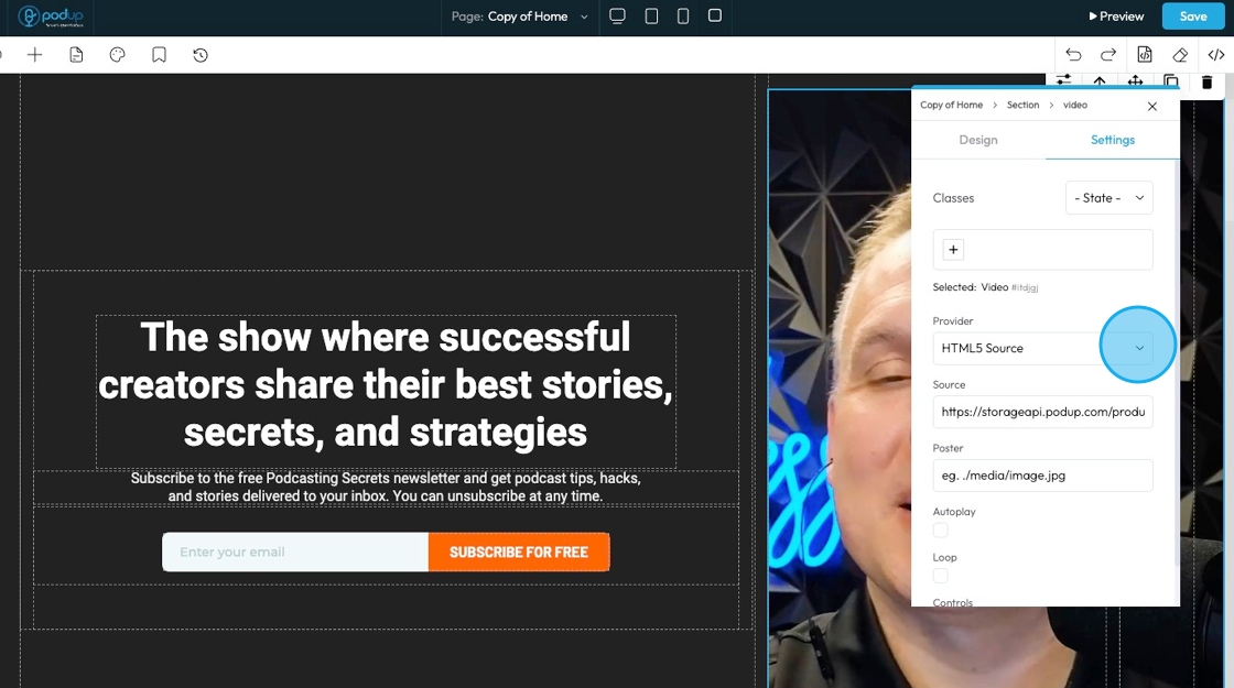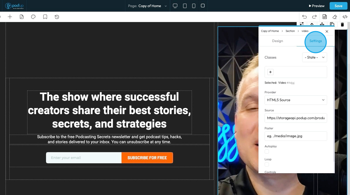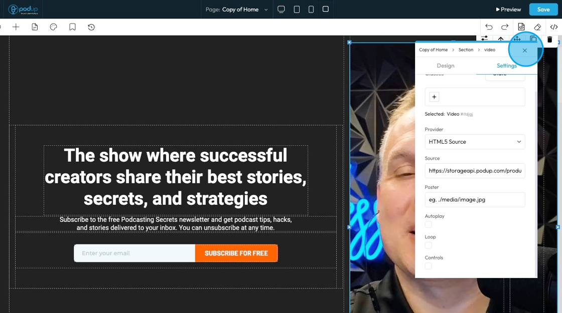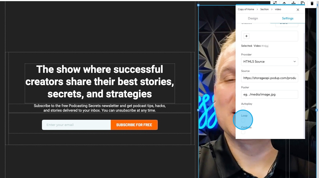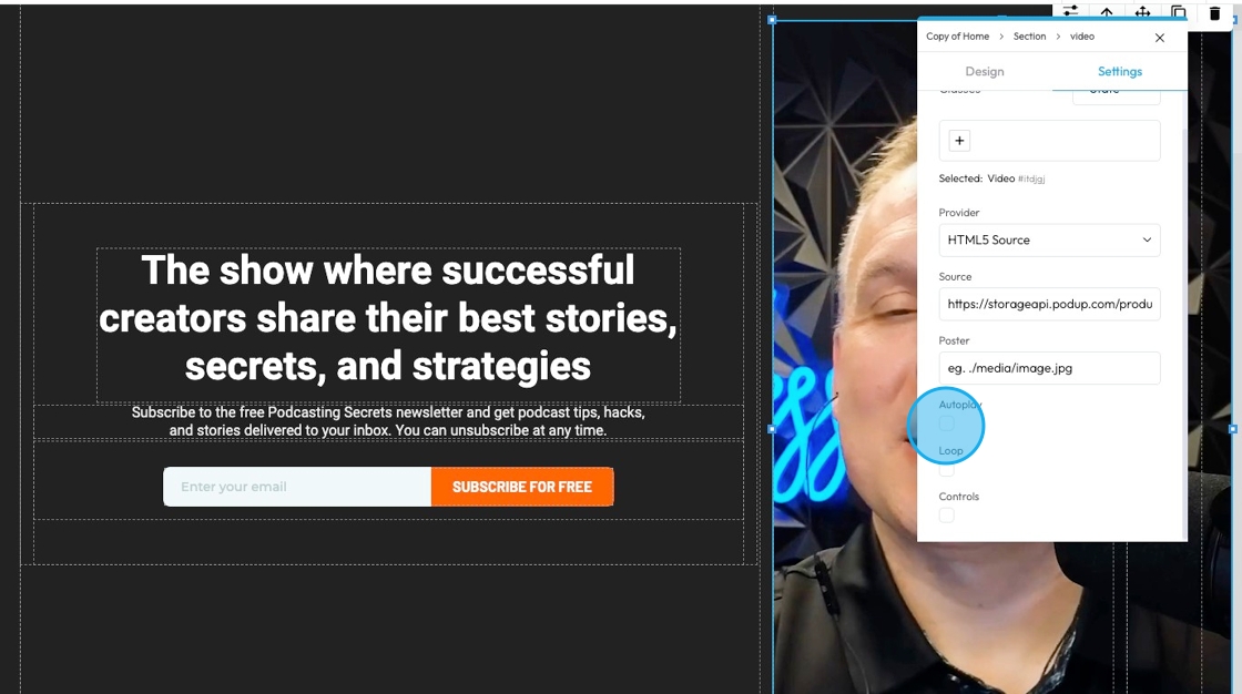 19. Click "Autoplay" to automatically have the video play on the website when the website is open