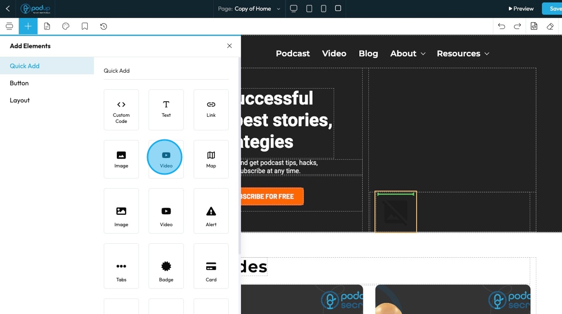 This guide shows you how to quickly add videos to your website using the Quick Add feature. It walks you through choosing a video source and customizing how it looks and works. Follow the steps to make your site more engaging and professional with video content.