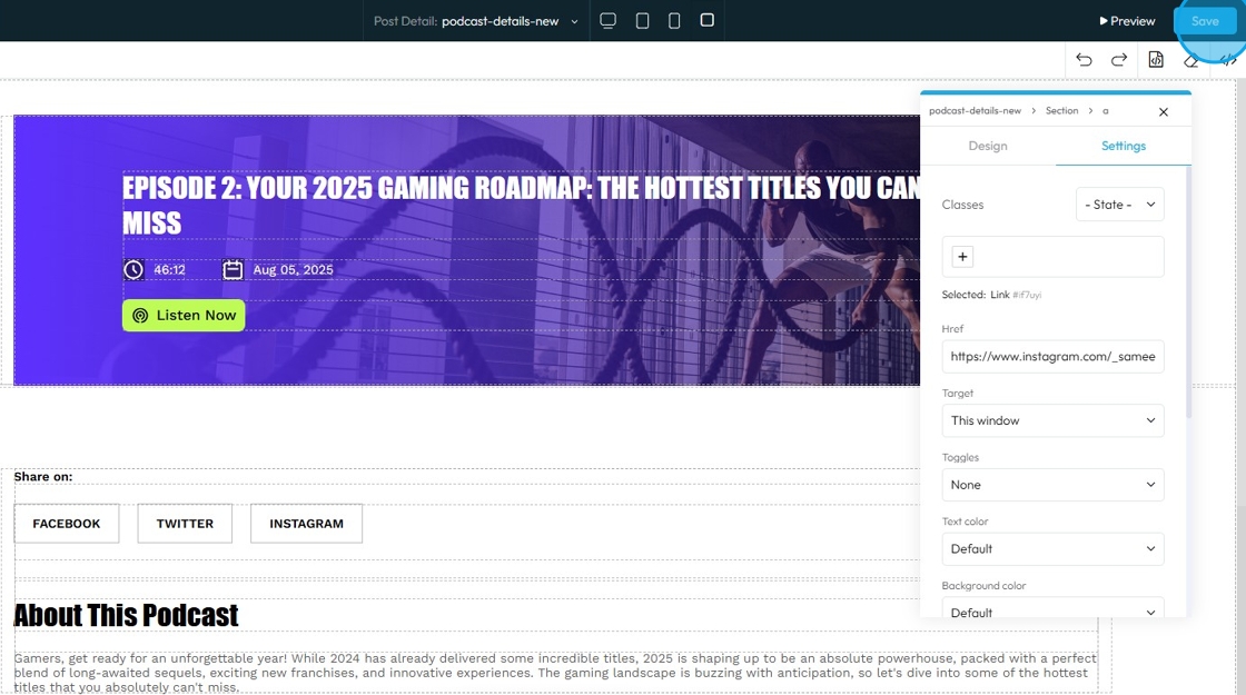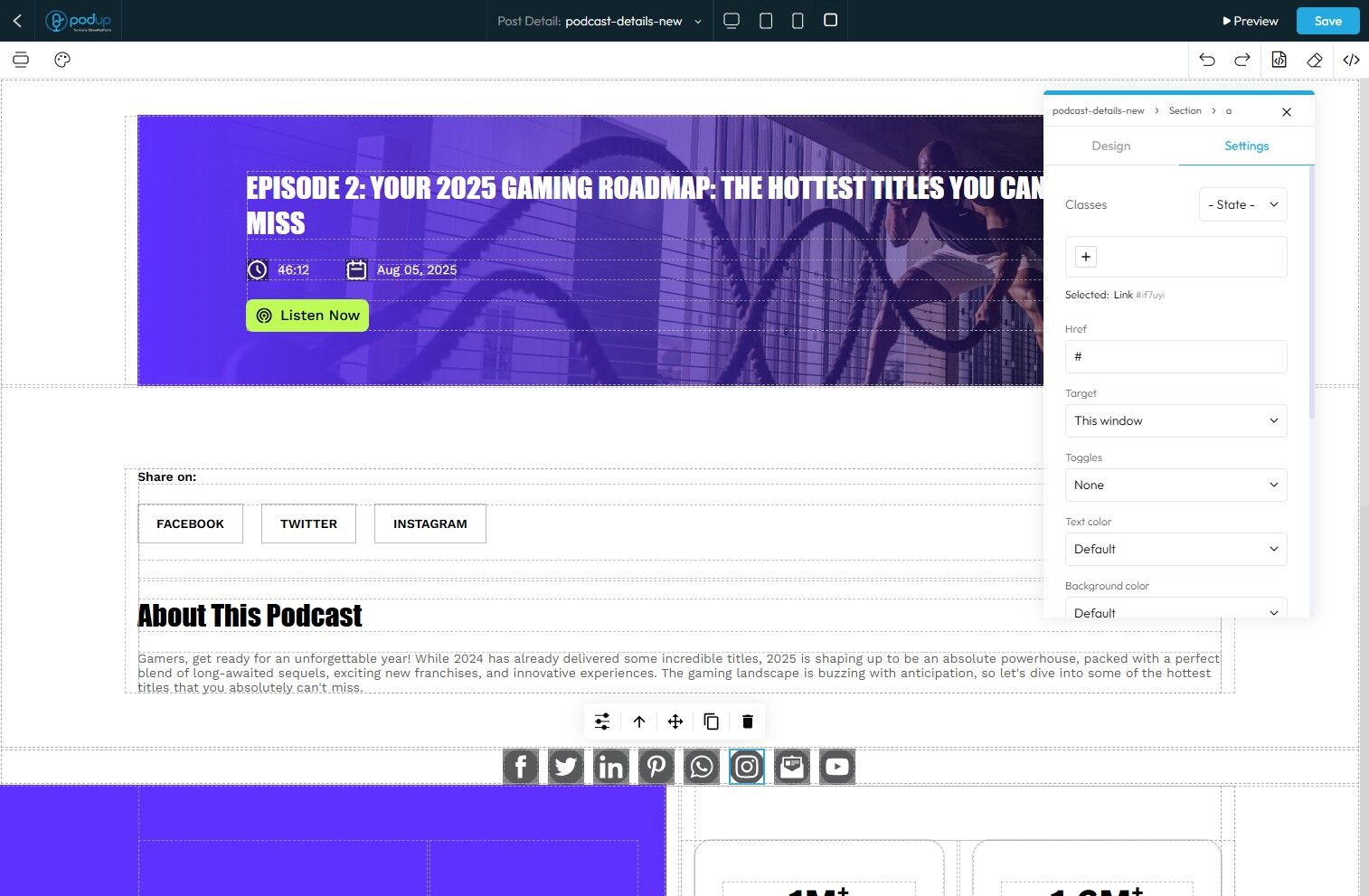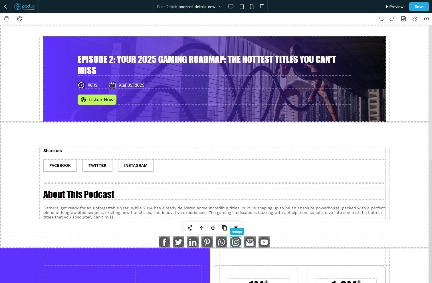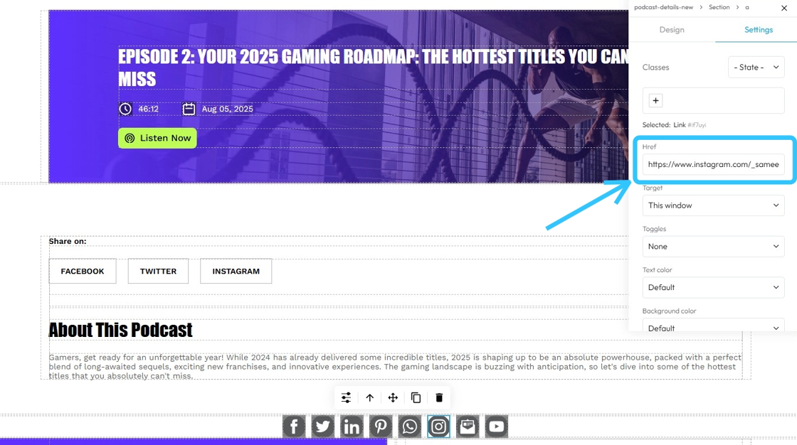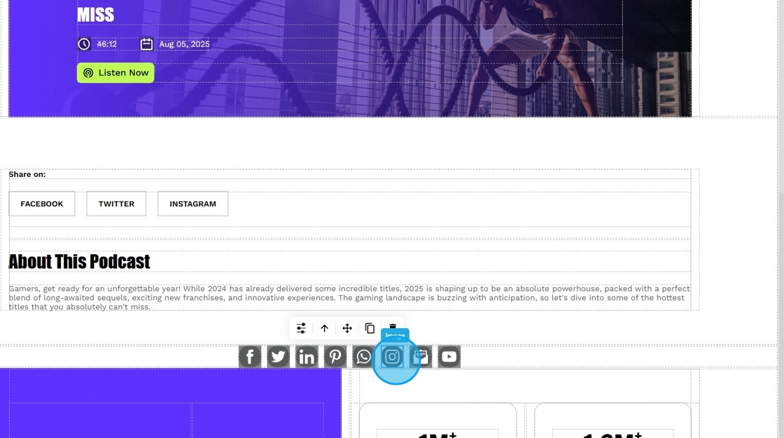 28. Navigate to your Podcast Page and click the "Instagram" icon.