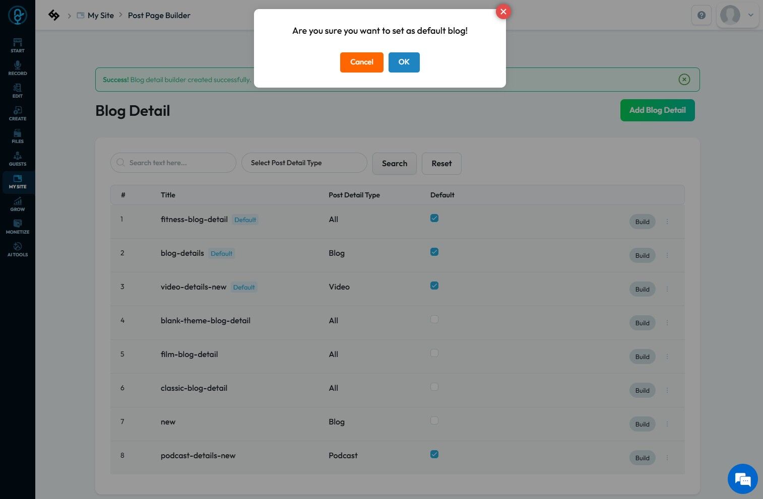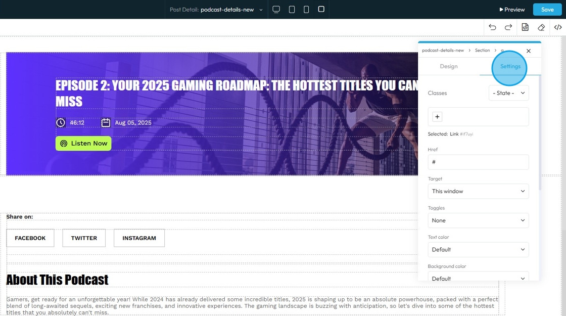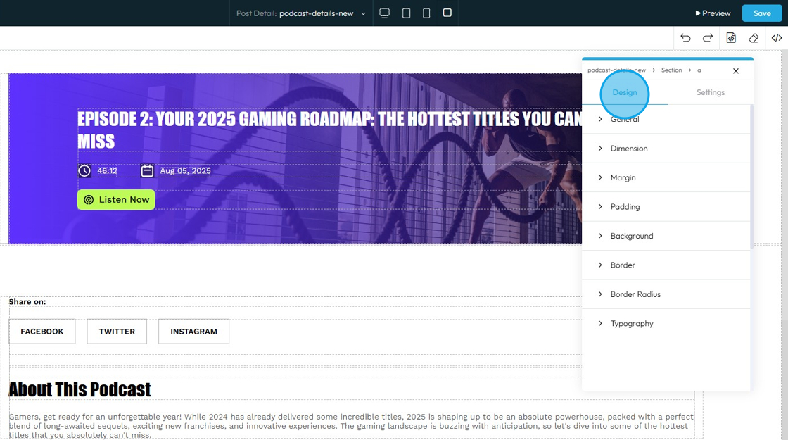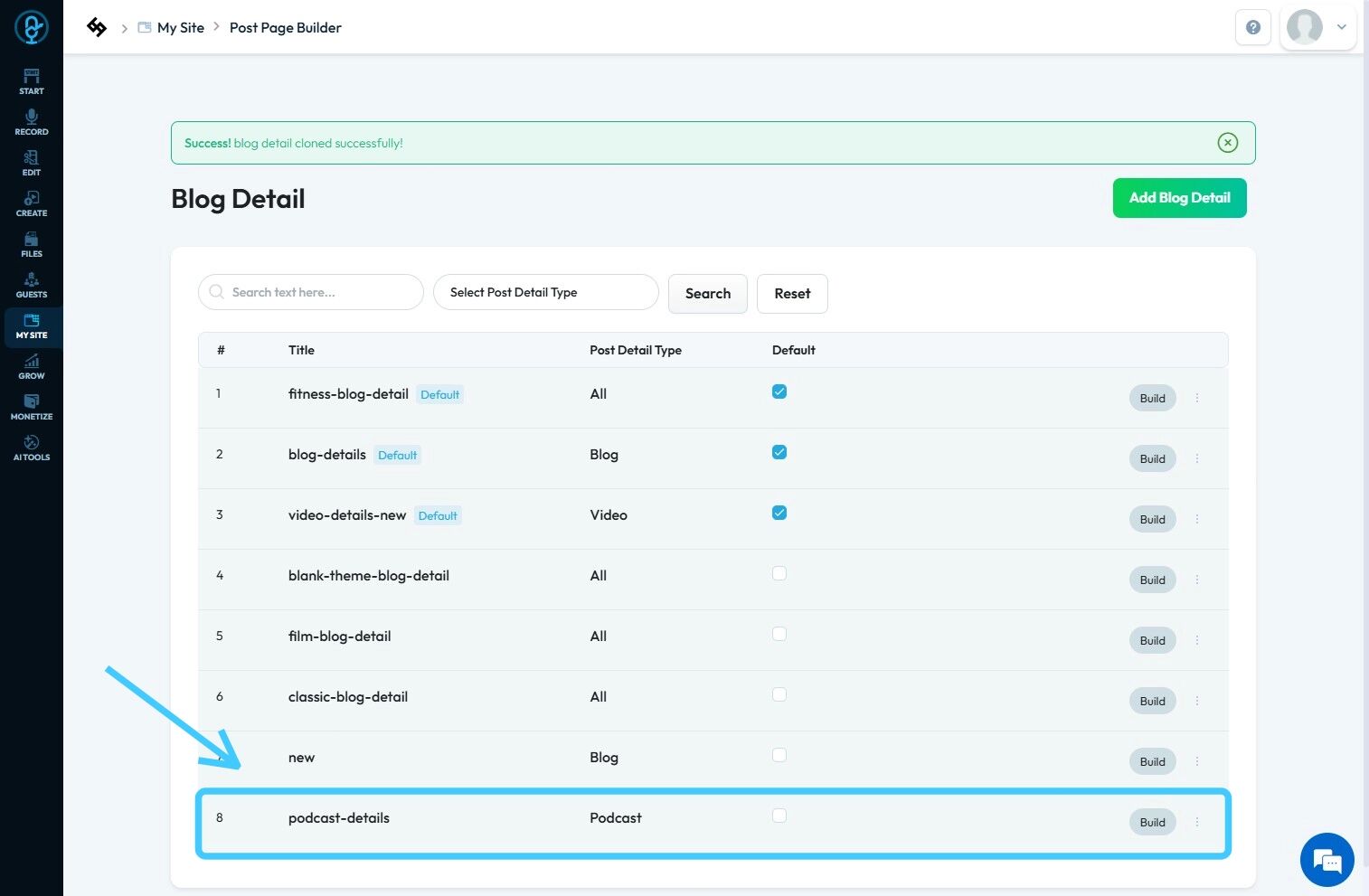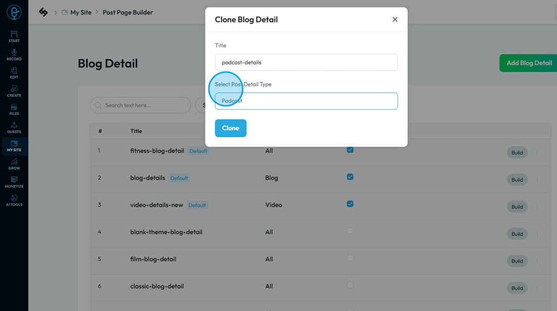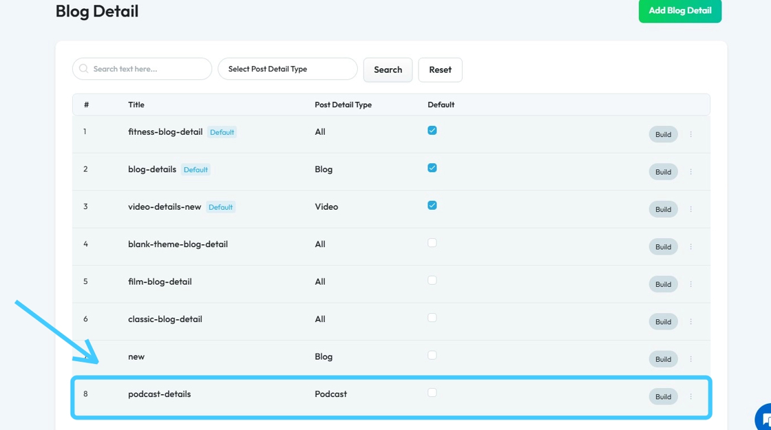 8. Select the "Podcast" option under "Select Post Detail Type"
