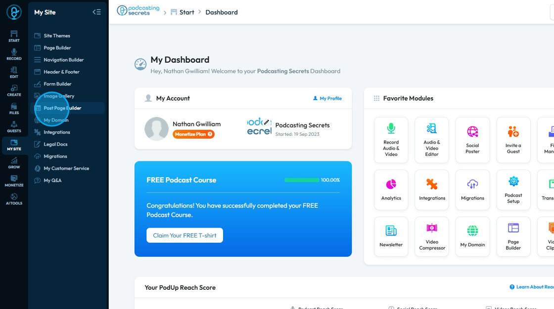 17. The PodUp Post Page Builder will load. Click the "Component" section