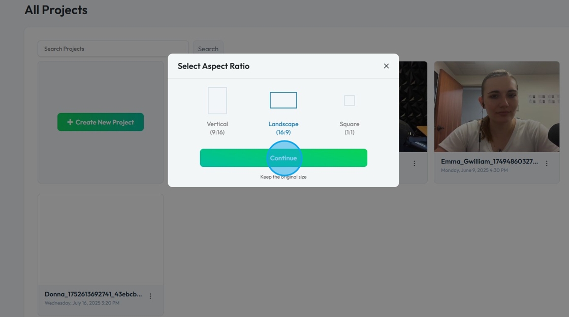 5. Choose the desired "Aspect Ratio" then click "Continue"