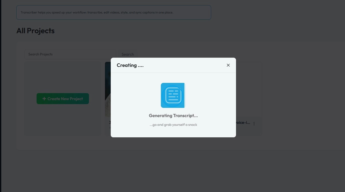 9. The "transcript" will start generating. This may take a few minutes. The longer the file the longer it will take to transcribe