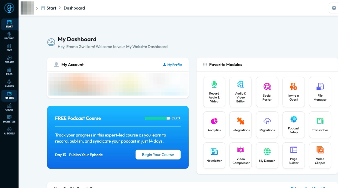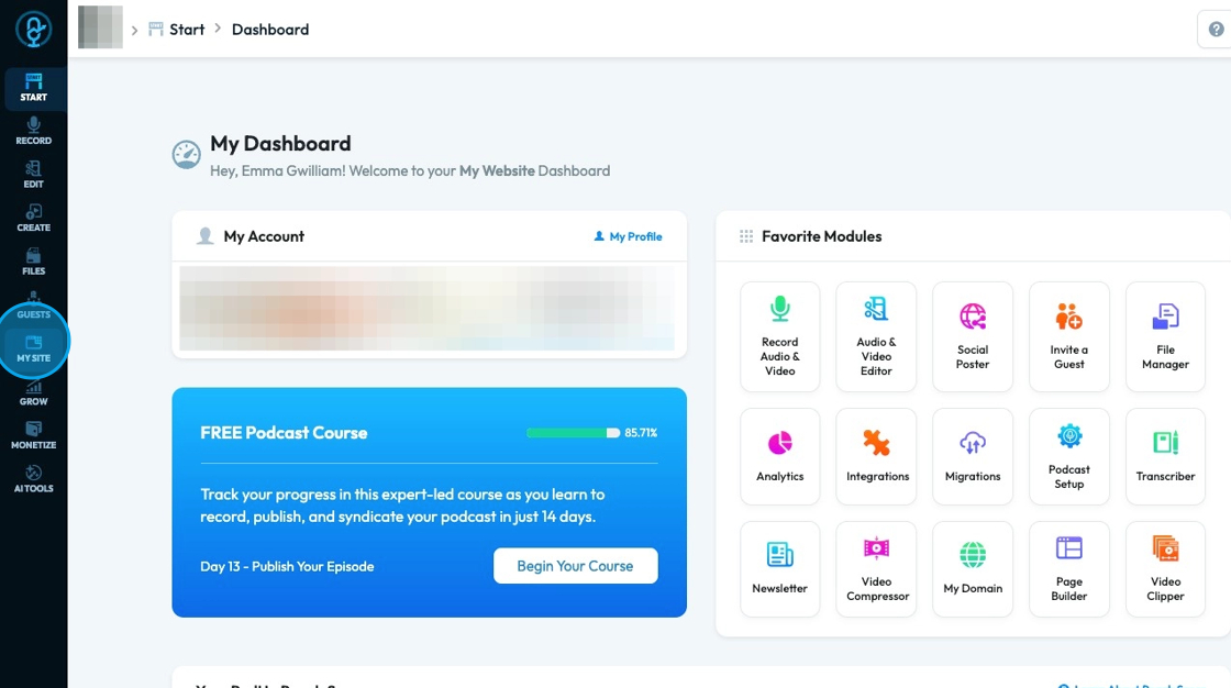4. Click "Click Here" in the second blue message box which will direct you to "Podcast Setup"