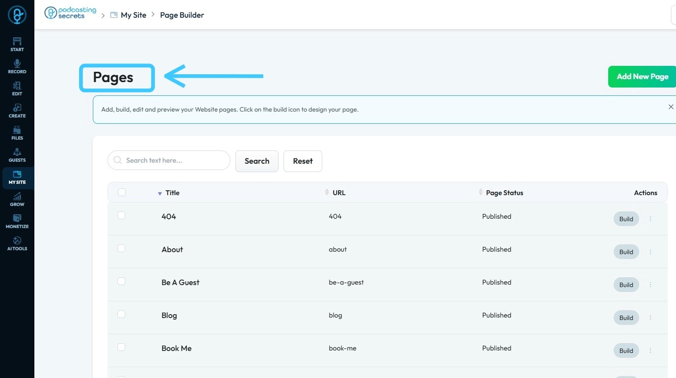 Follow this guide to quickly create a professional PodUp home page and establish your online presence 1. Navigate to https://app.podup.com/home 2. Click "My Site" 3. Select "Page Builder" 4. Click "Add New Page" 5. Click "Add New Page" to open the ...