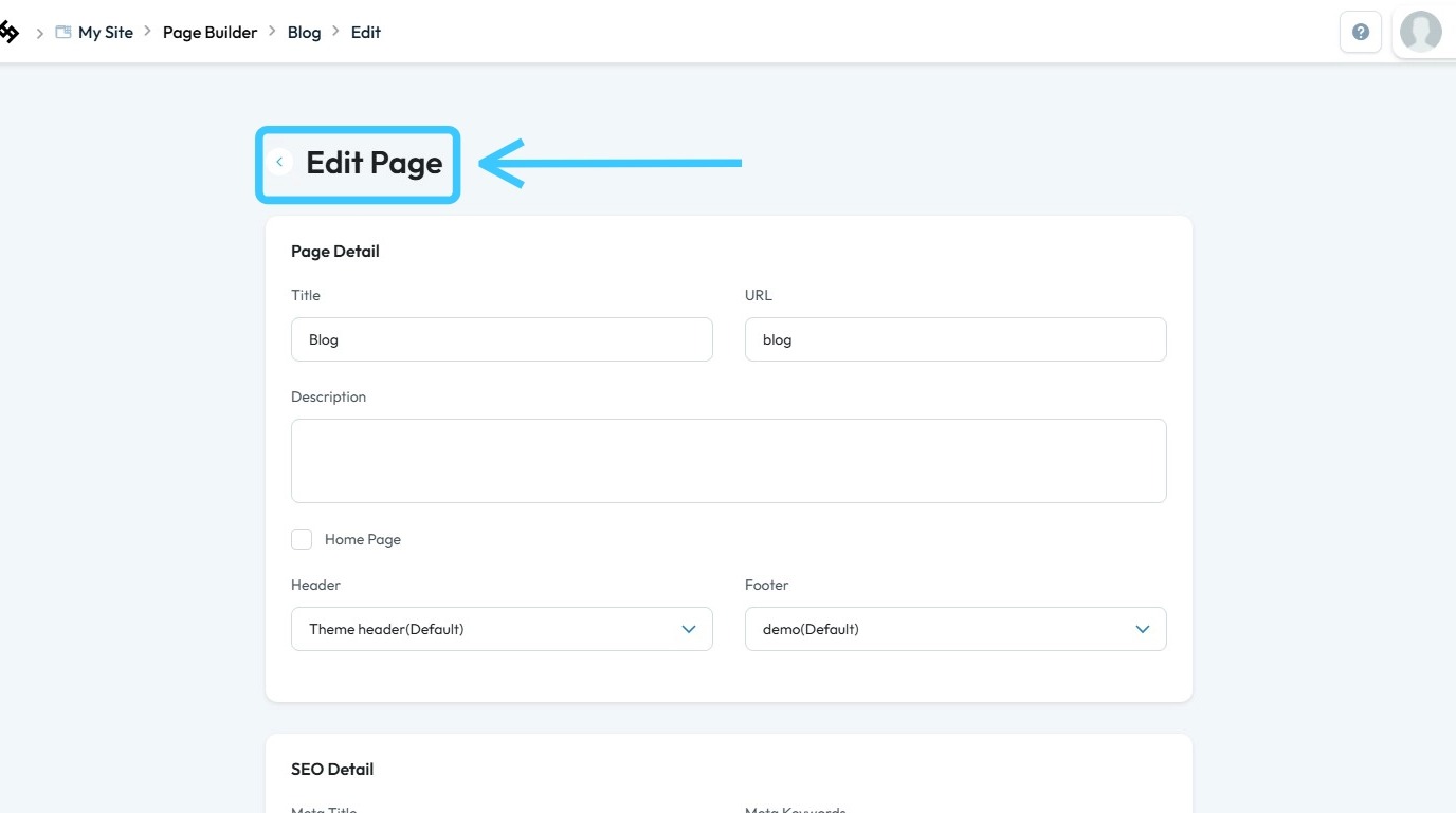 7. The “Edit Page” section will load