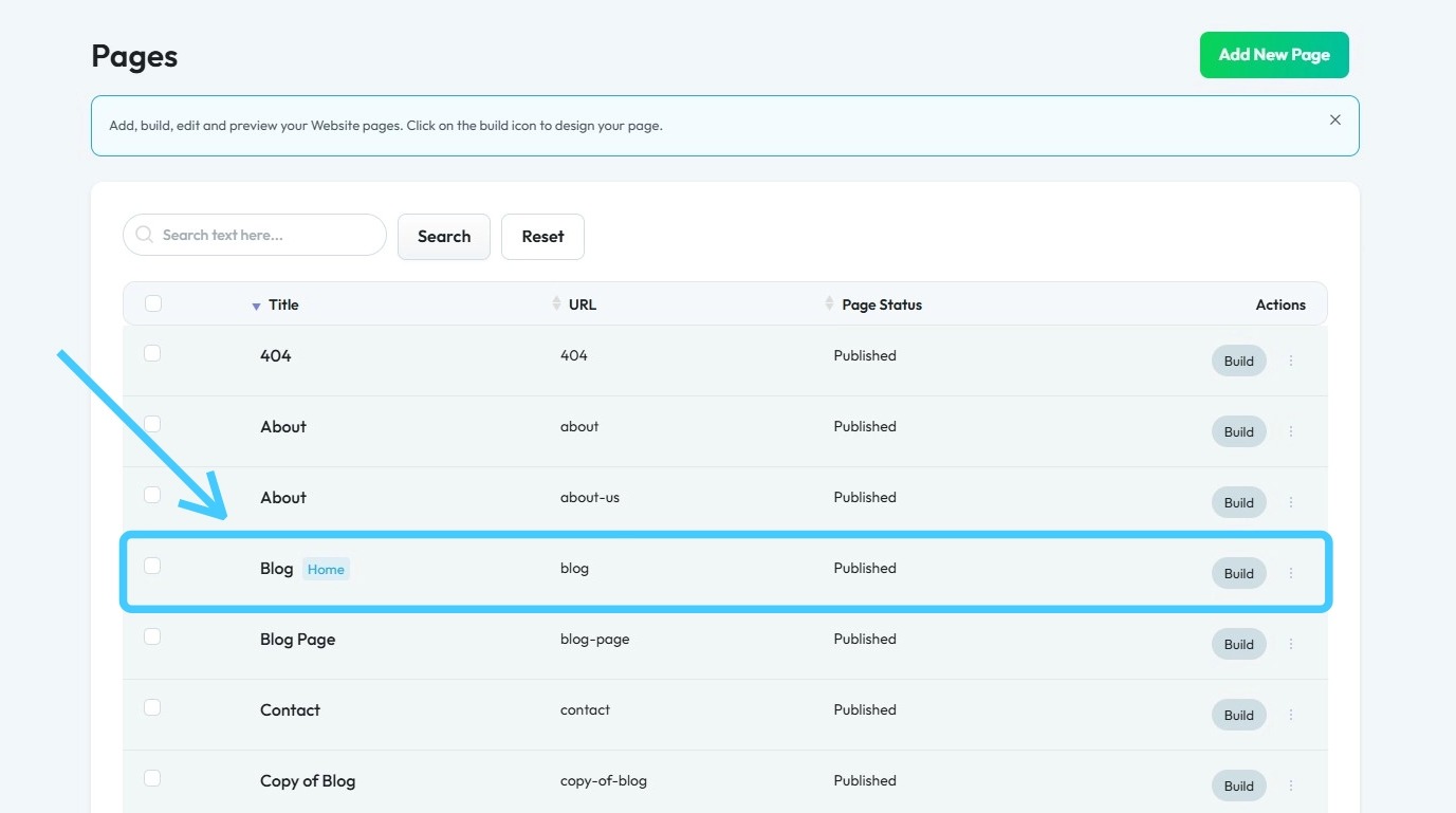 4. All your website “Pages” will open