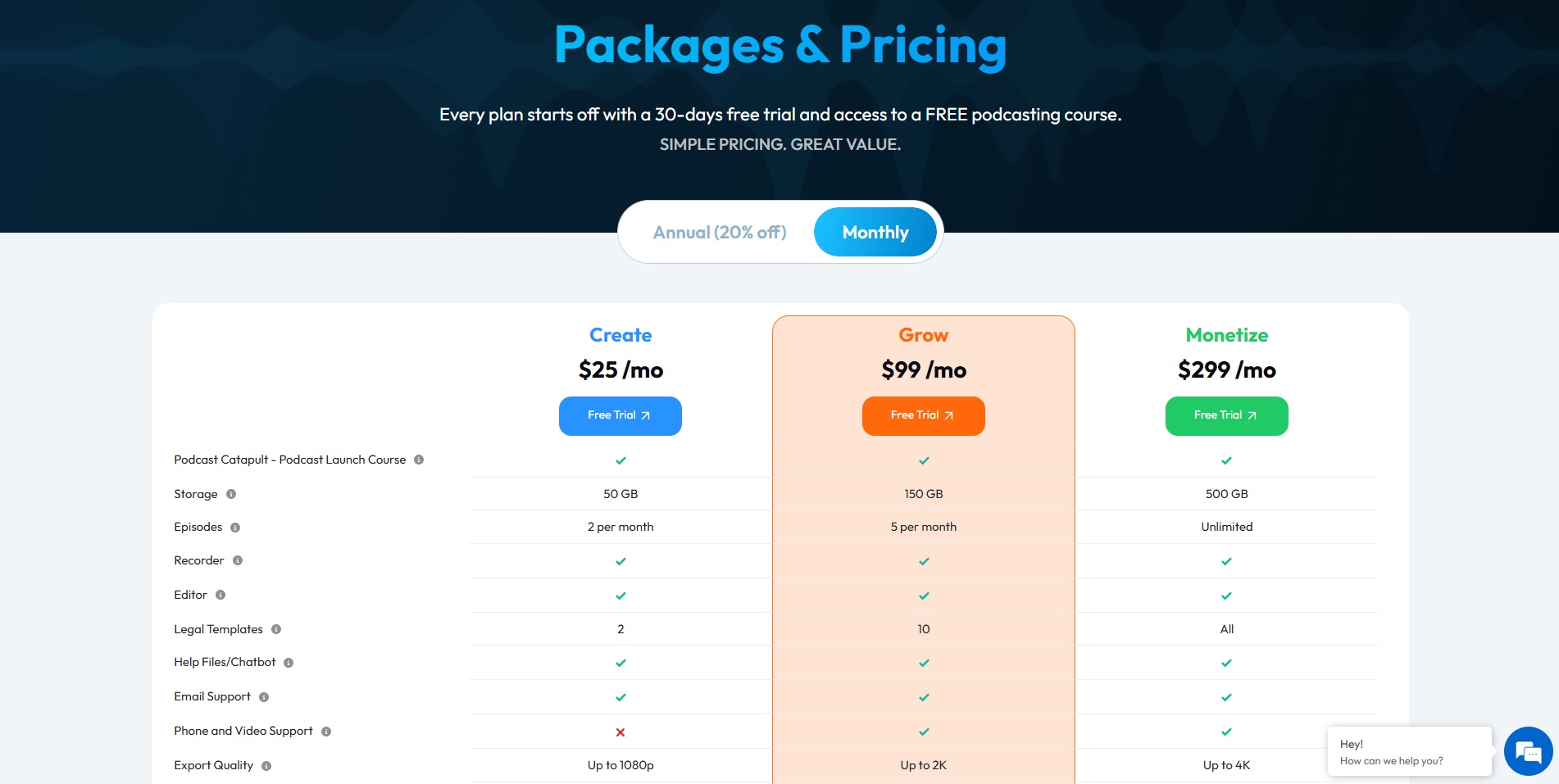 7. The "Click here" link will bring you to this page where you can view all the pricing options that PodUp offers