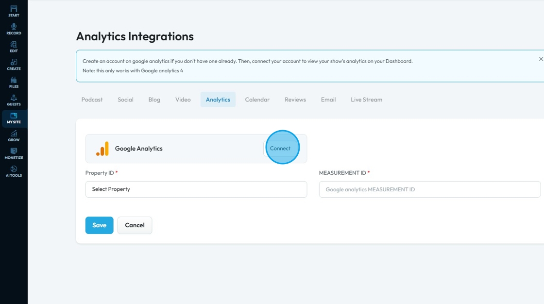 15. Your "Google Analytics" will be connected in PodUp