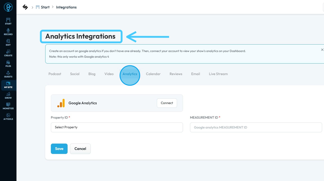 How to Connect Google Analytics Account to PodUp Analytics Using Integrations