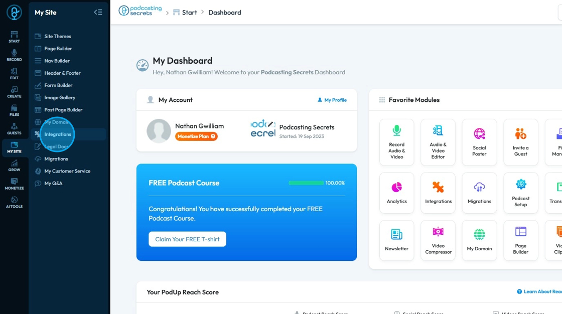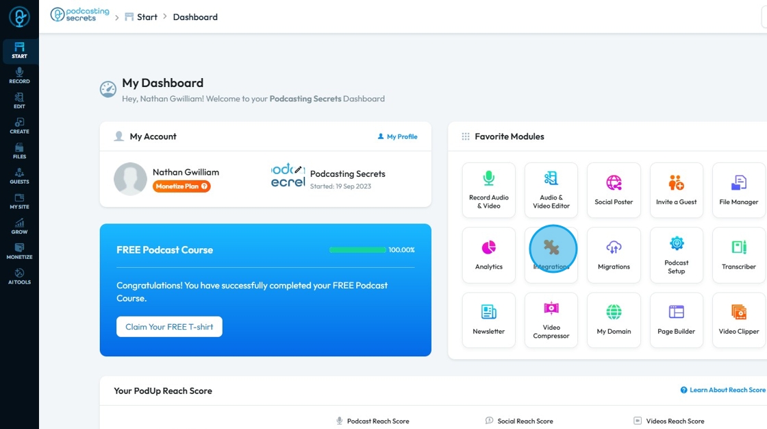 2. Click on "Integrations" in "Favorites Modules" on your "Dashboard".